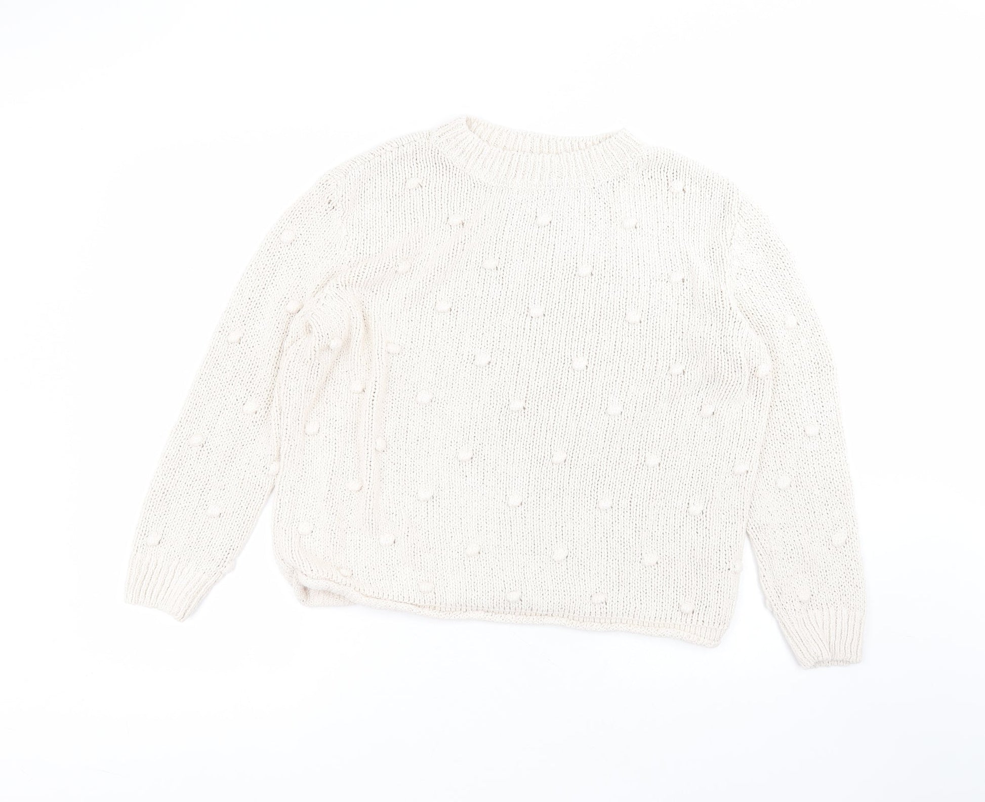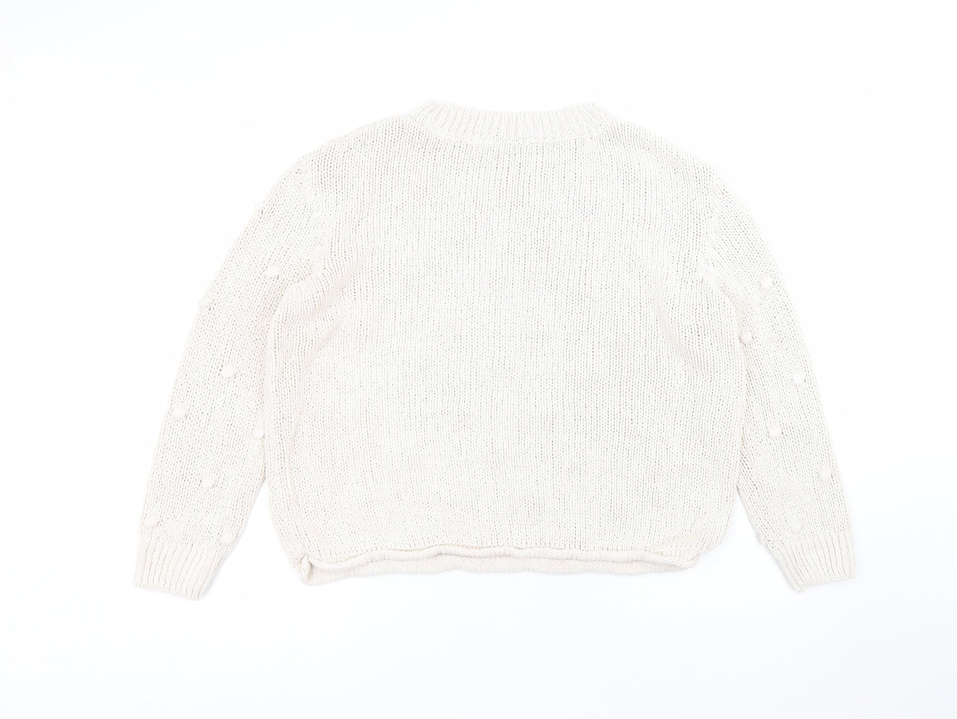 TU Womens White Round Neck Cotton Pullover Jumper Size 16