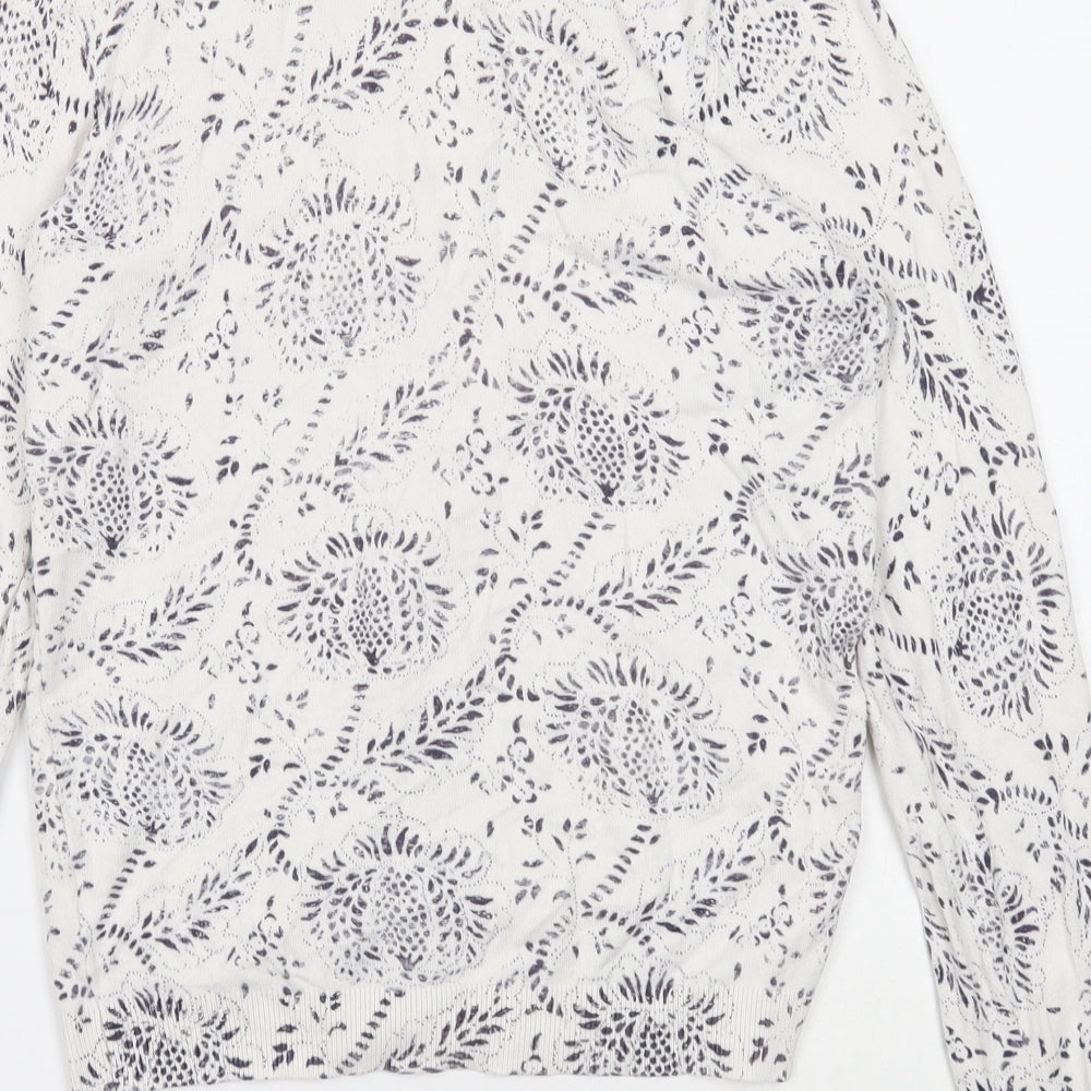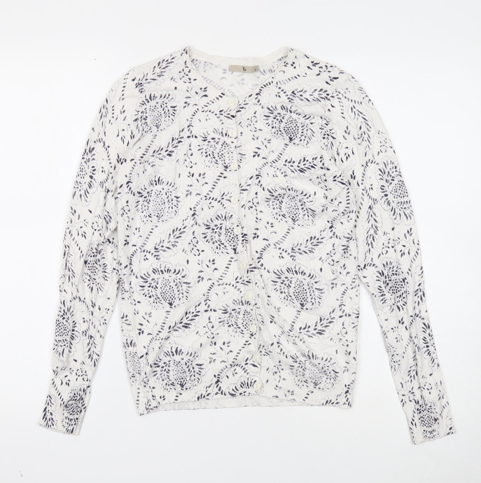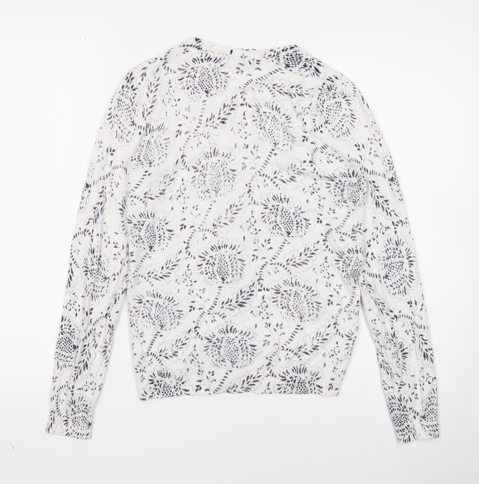 TU Womens White Round Neck Geometric Acrylic Cardigan Jumper Size 12