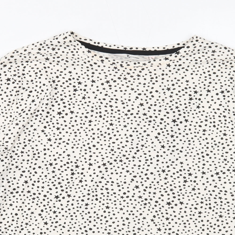 TU Womens White Round Neck Polka Dot Cotton Pullover Jumper Size 10