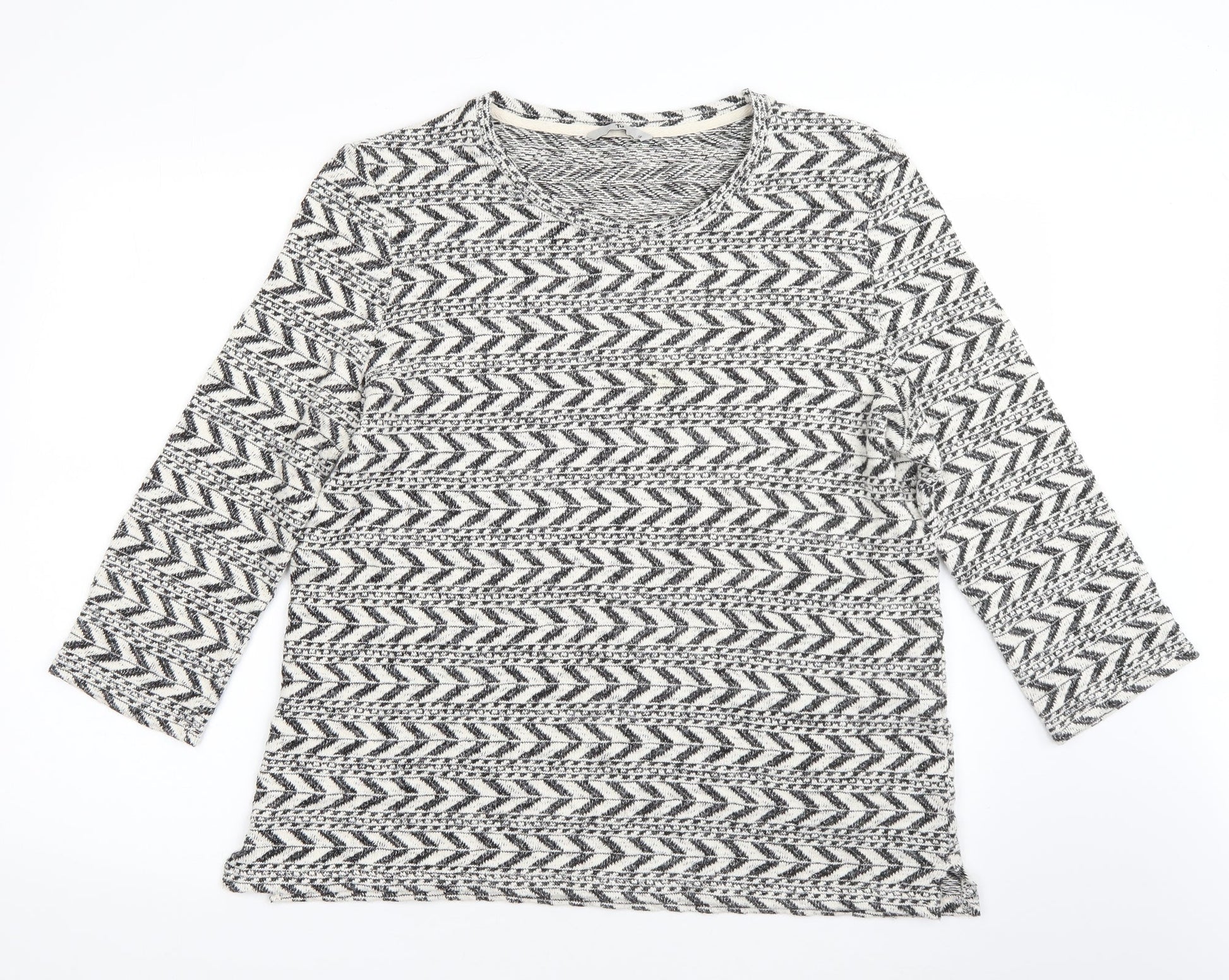 TU Womens White Round Neck Striped Cotton Pullover Jumper Size 18