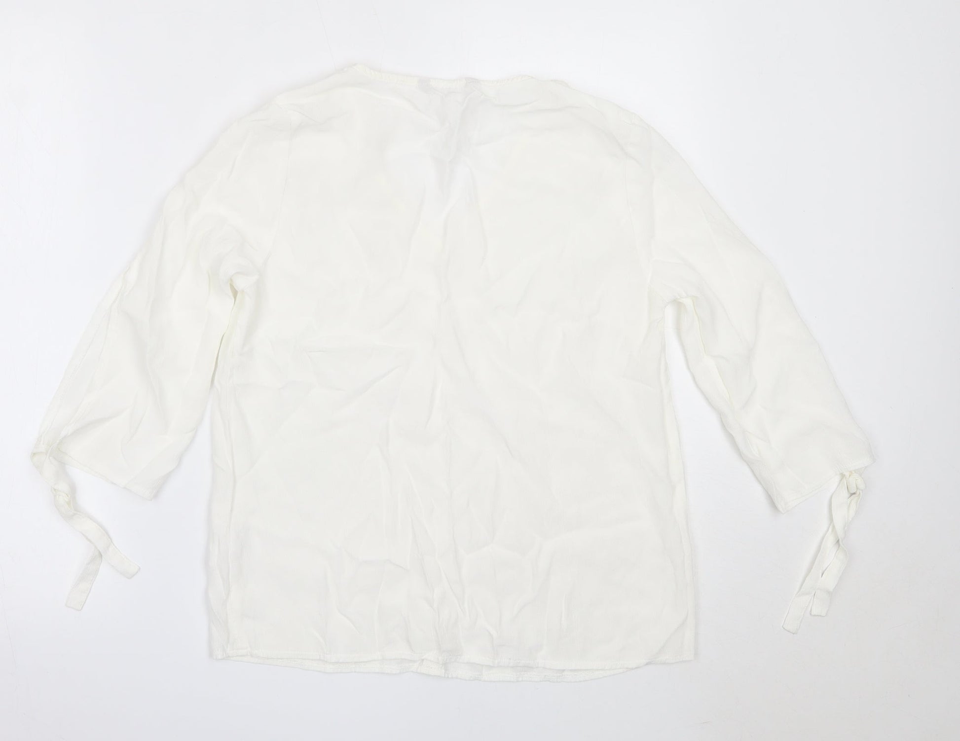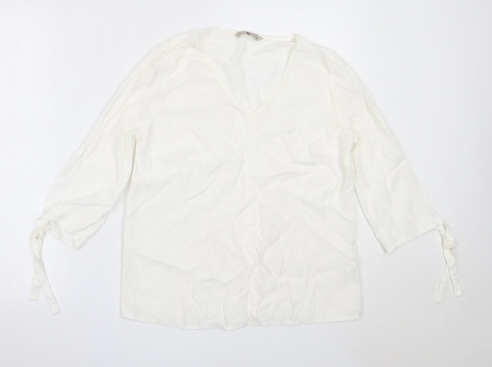 TU Womens White Viscose Basic Blouse Size 10 V-Neck