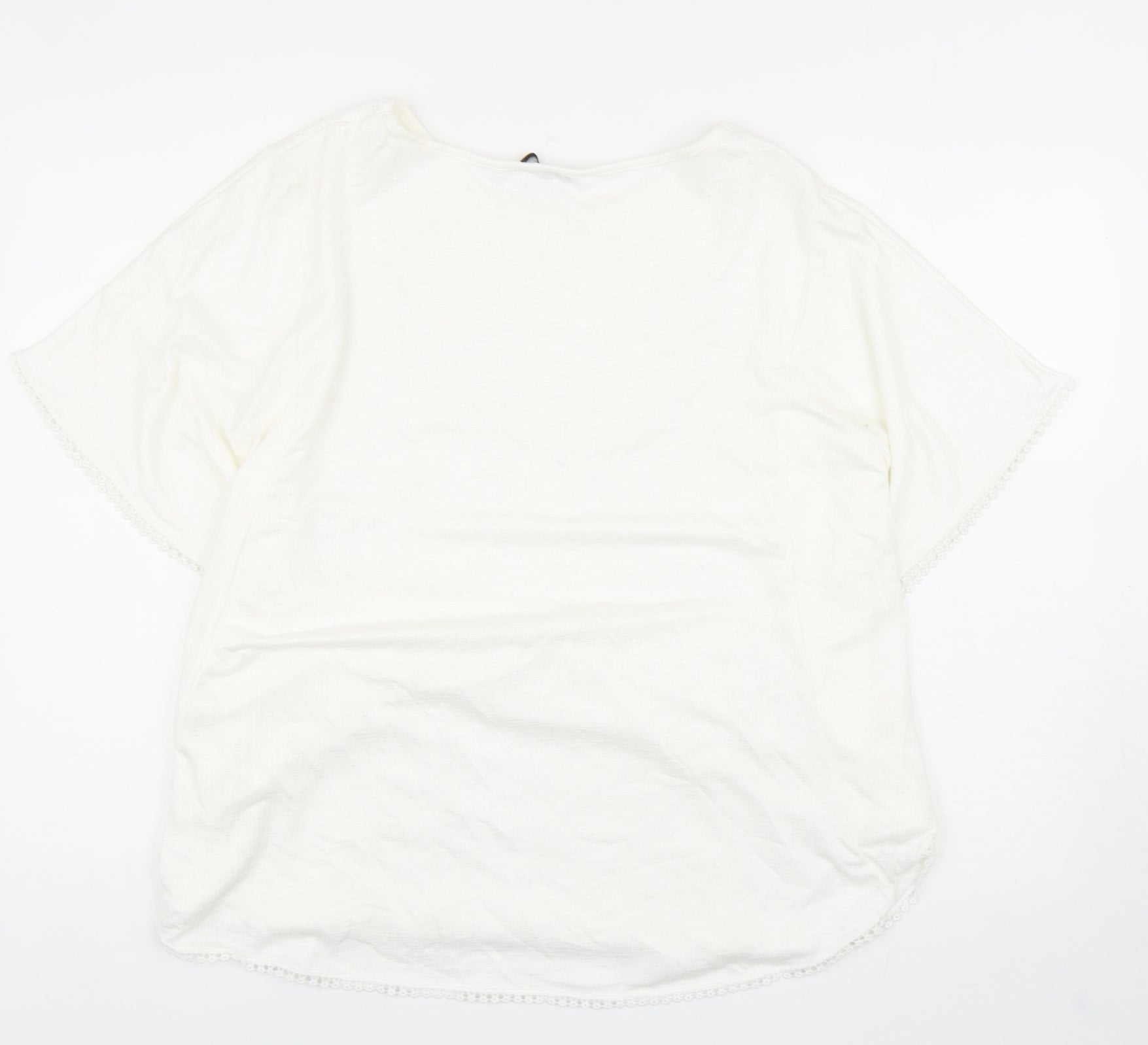 TU Womens White Viscose Basic Blouse Size 16 Boat Neck - Lace Detail