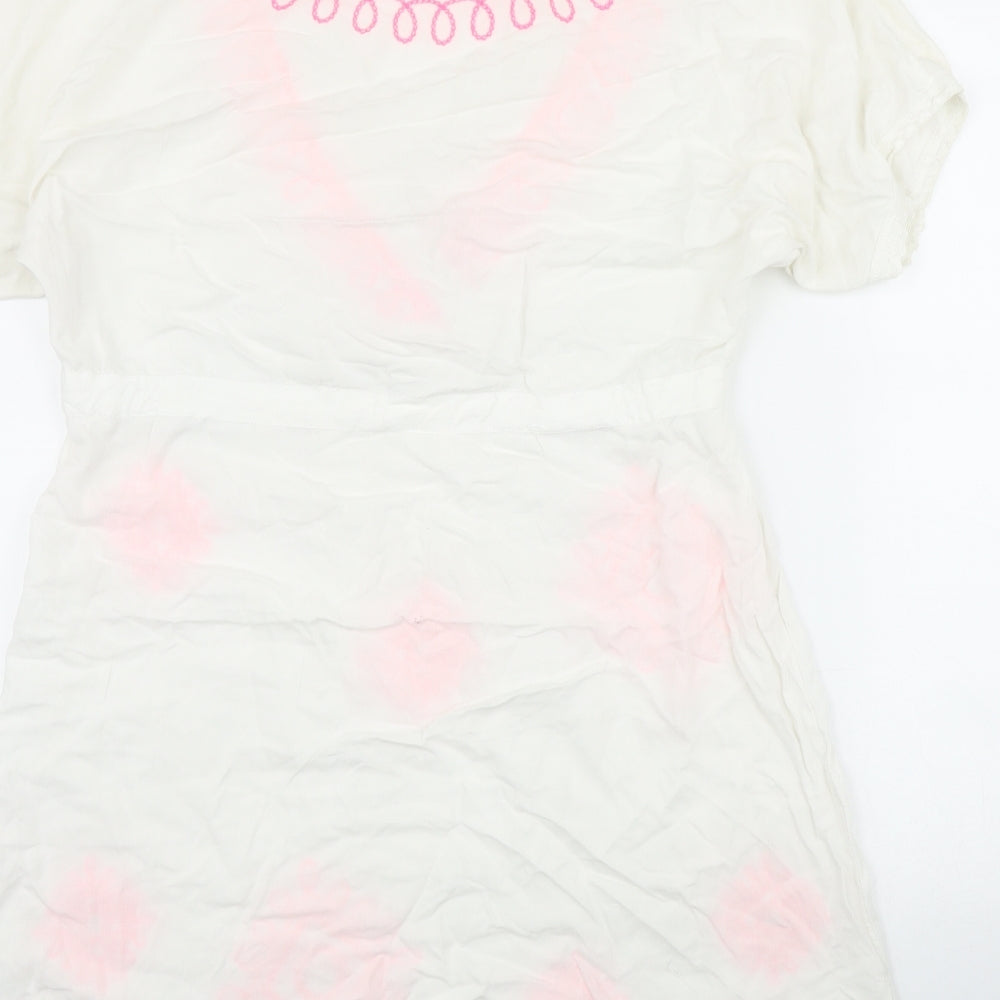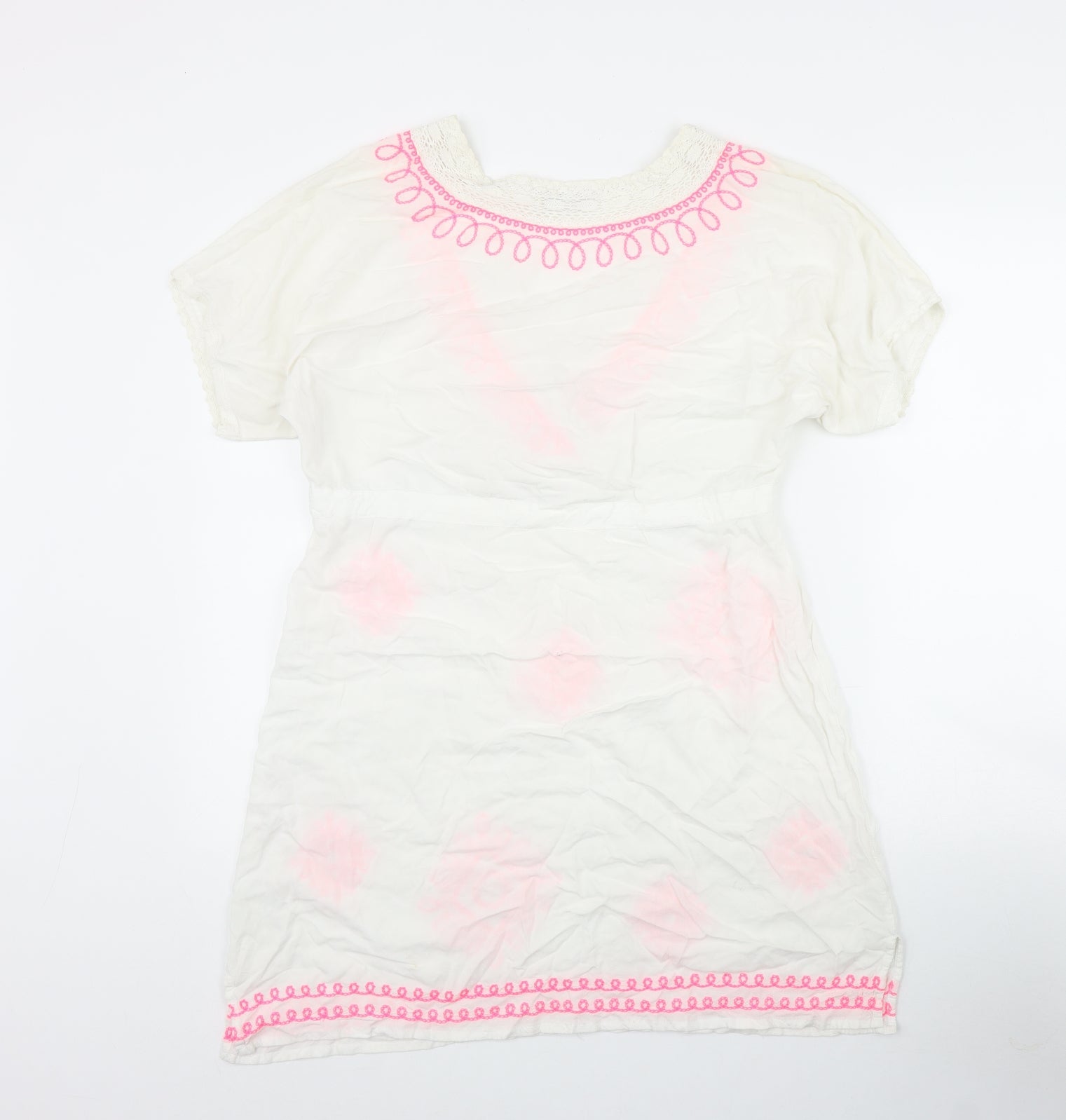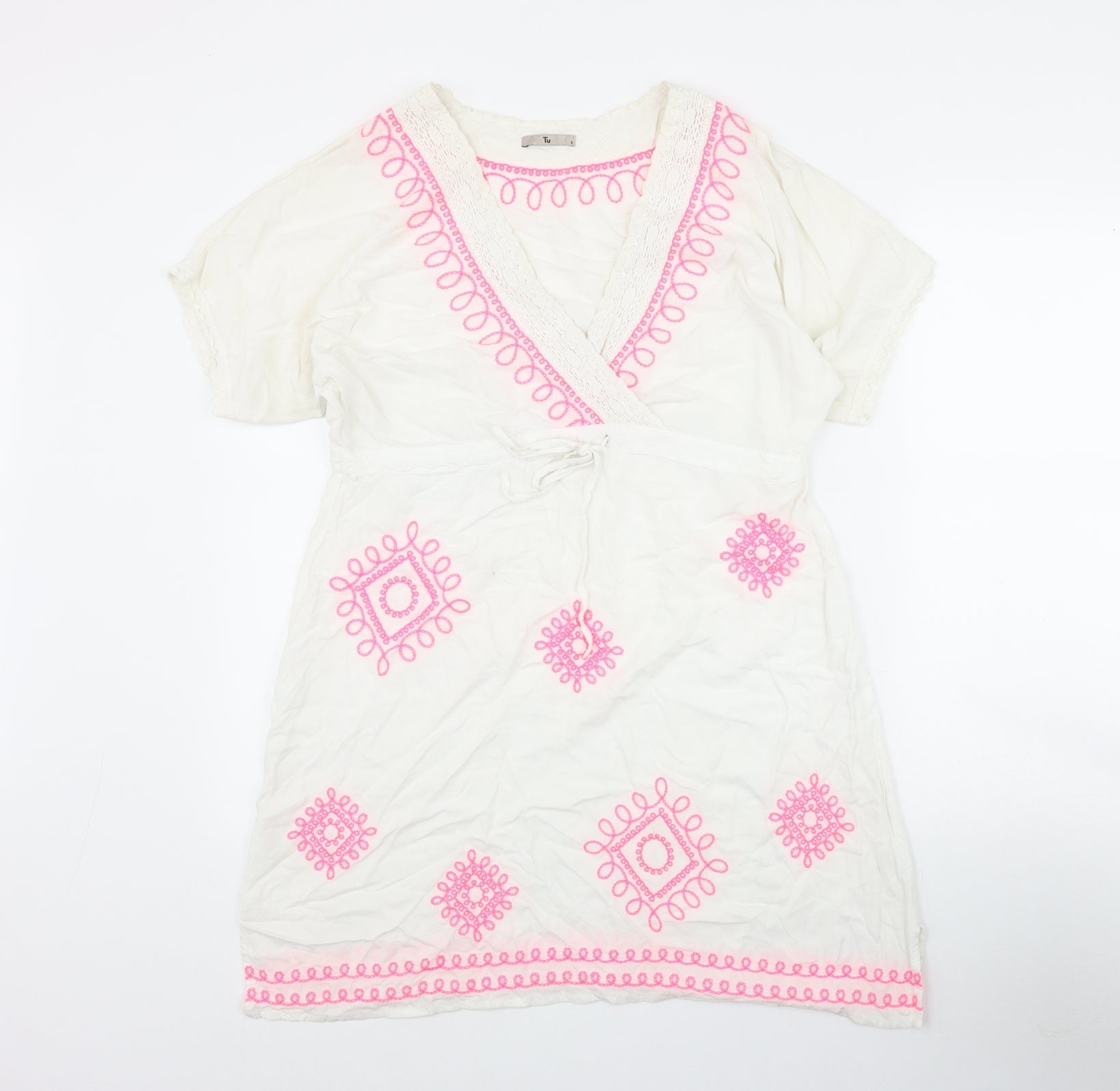 TU Womens White Viscose Kaftan Size S V-Neck Tie - Embroidered