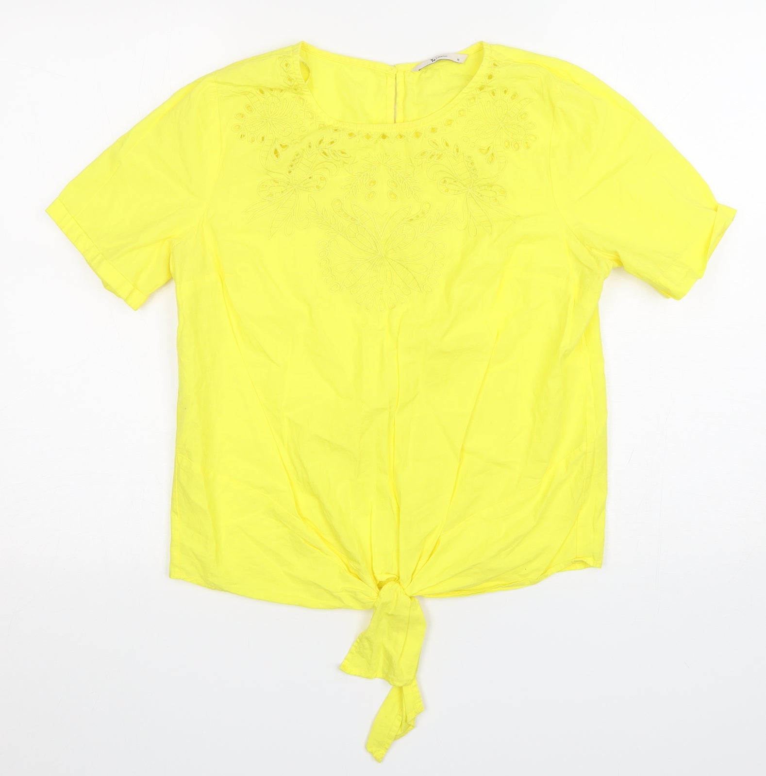 TU Womens Yellow Cotton Basic T-Shirt Size 10 Round Neck