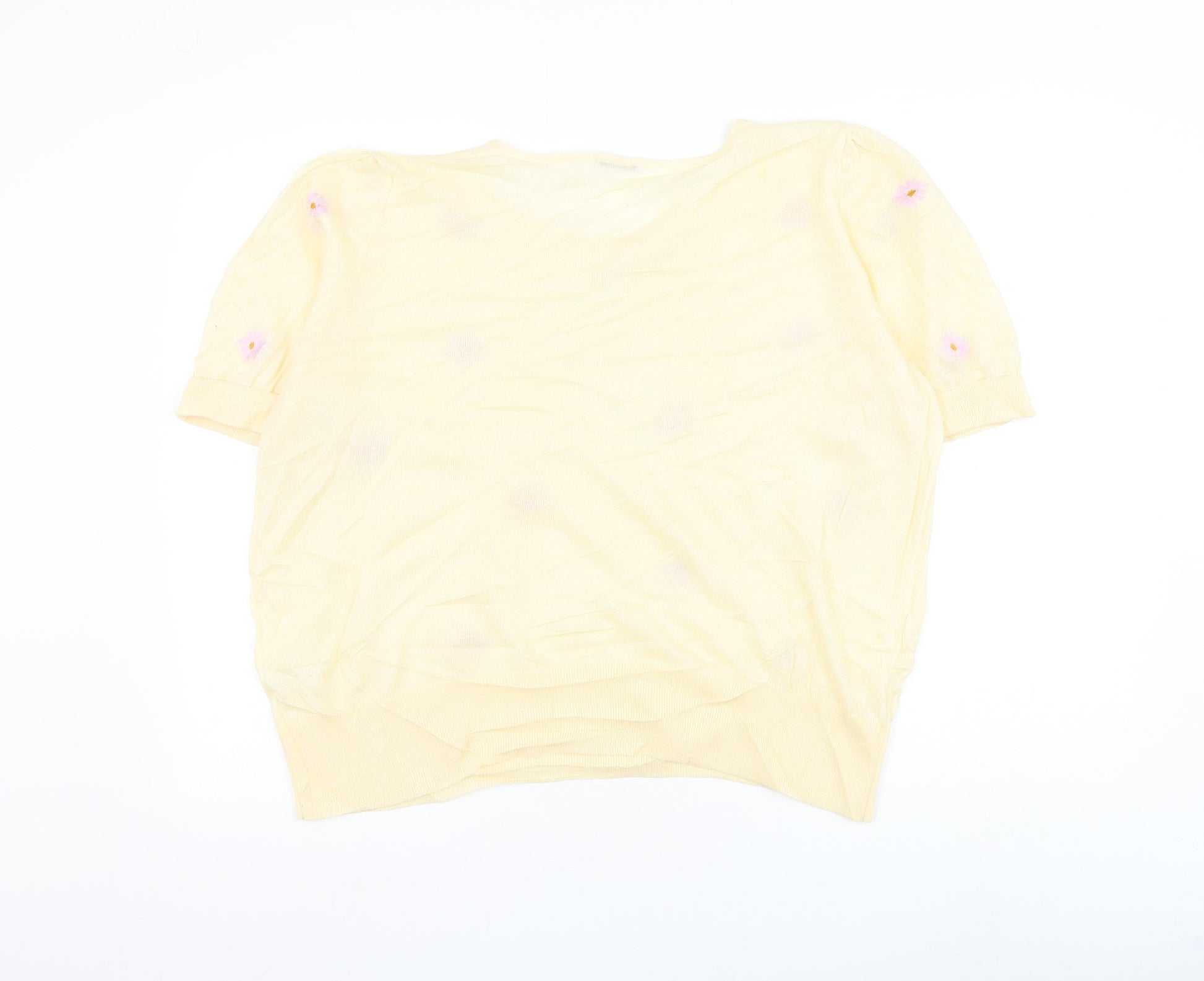 TU Womens Yellow Round Neck Floral Cotton Pullover Jumper Size 10 - Key Hole Neck