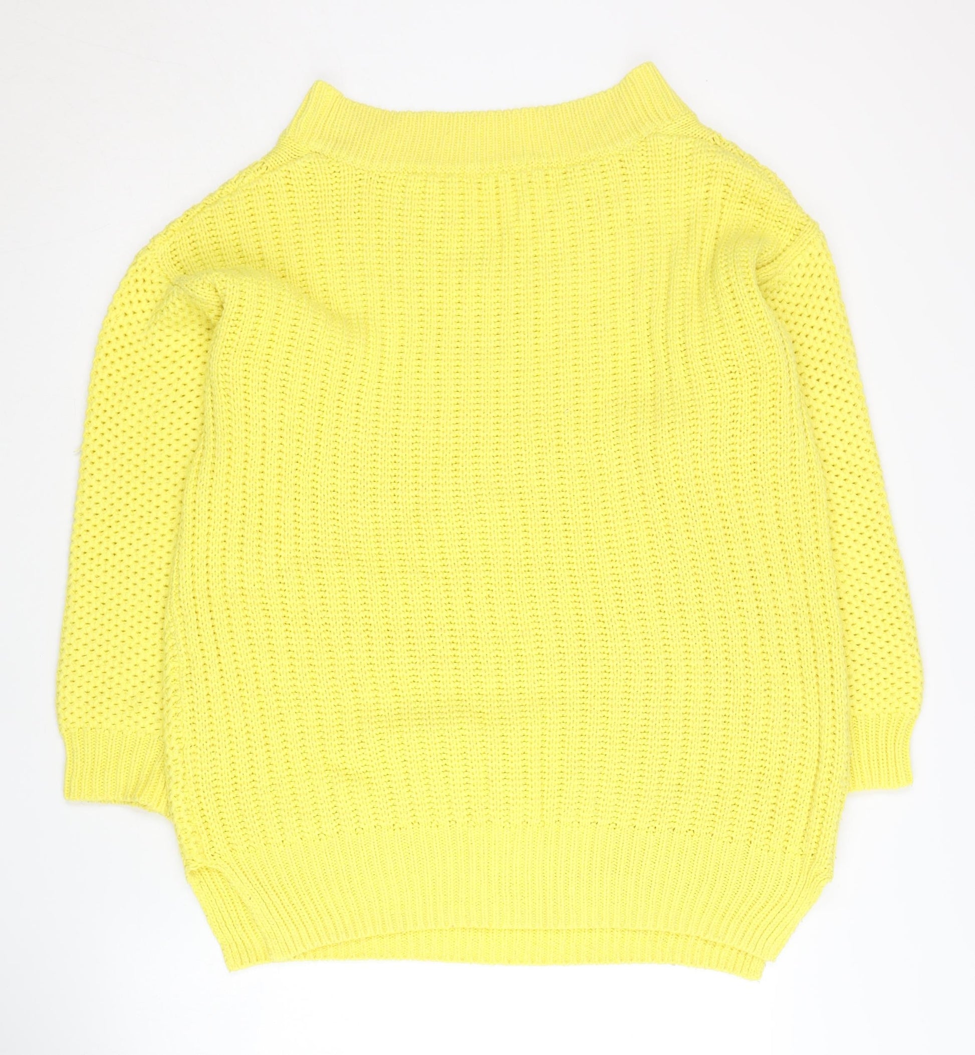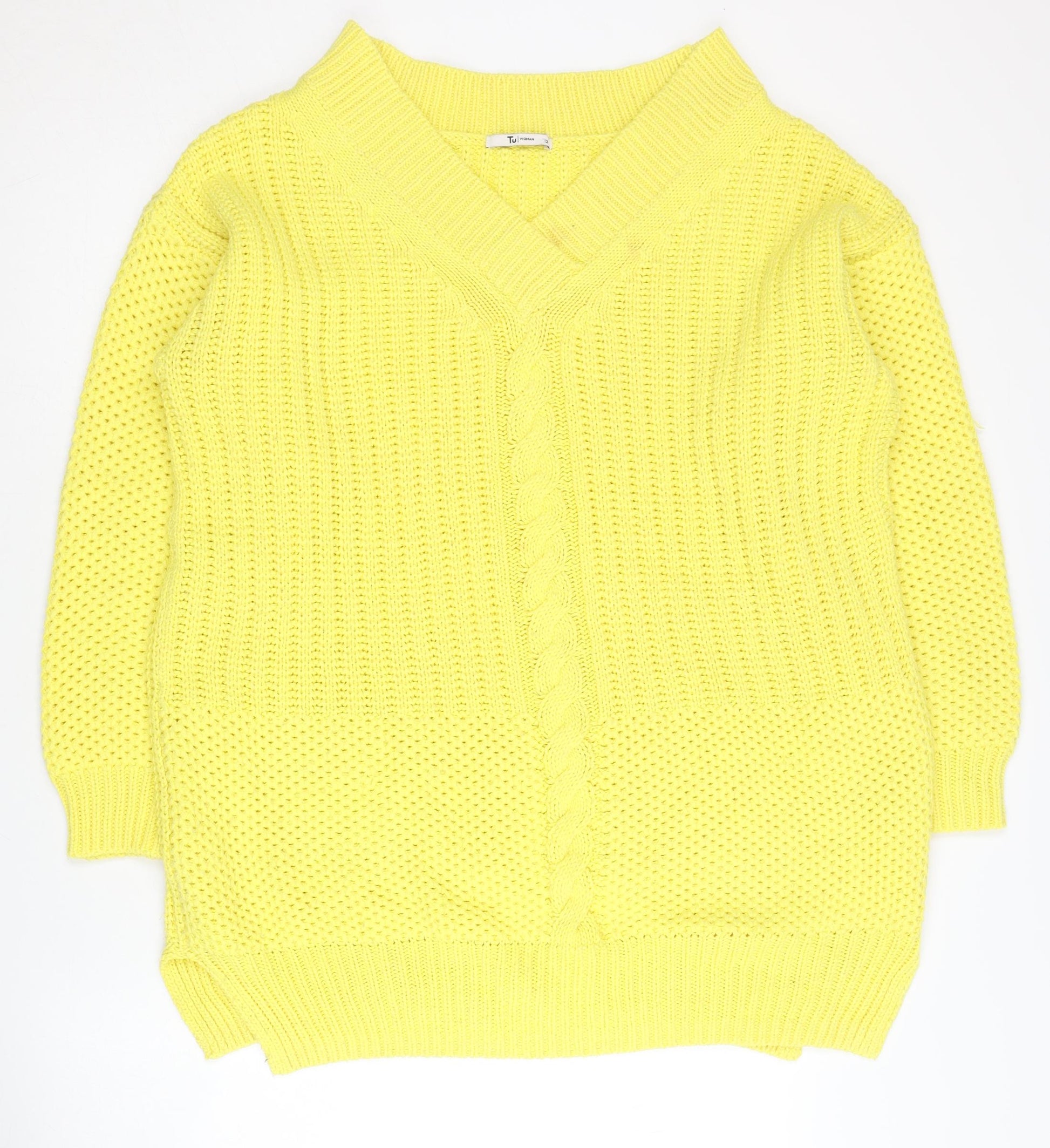 TU Women's Yellow V-Neck Cable Knit Jumper Size 12