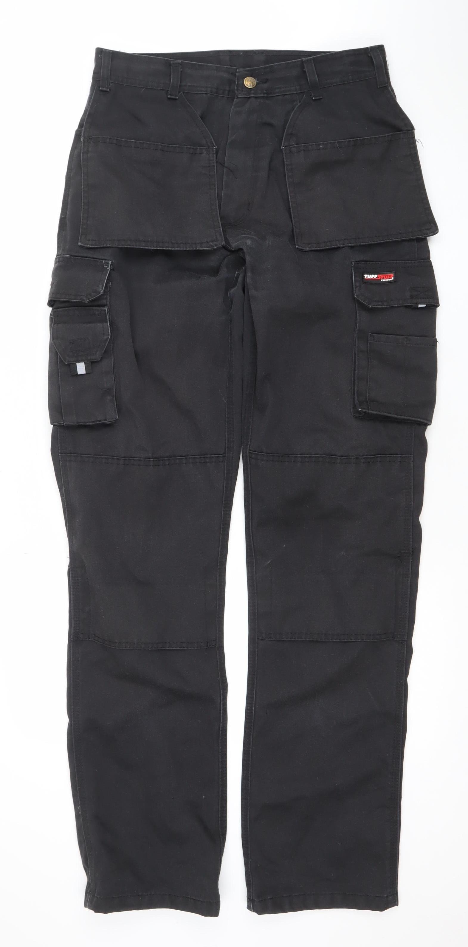 TuffStuff Black Mens Cargo Workwear Trousers 32W 35L Polyester Cotton