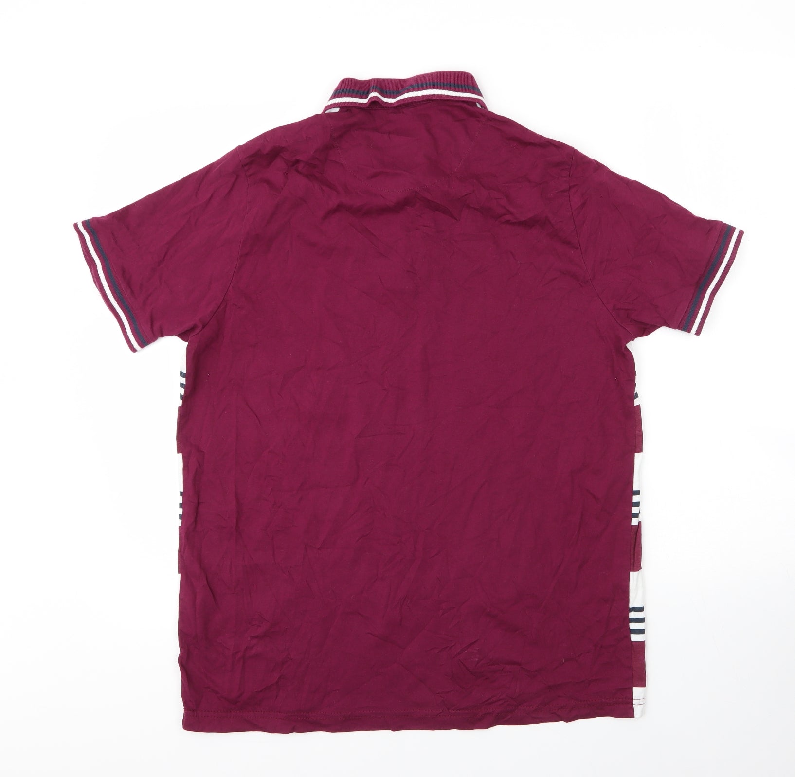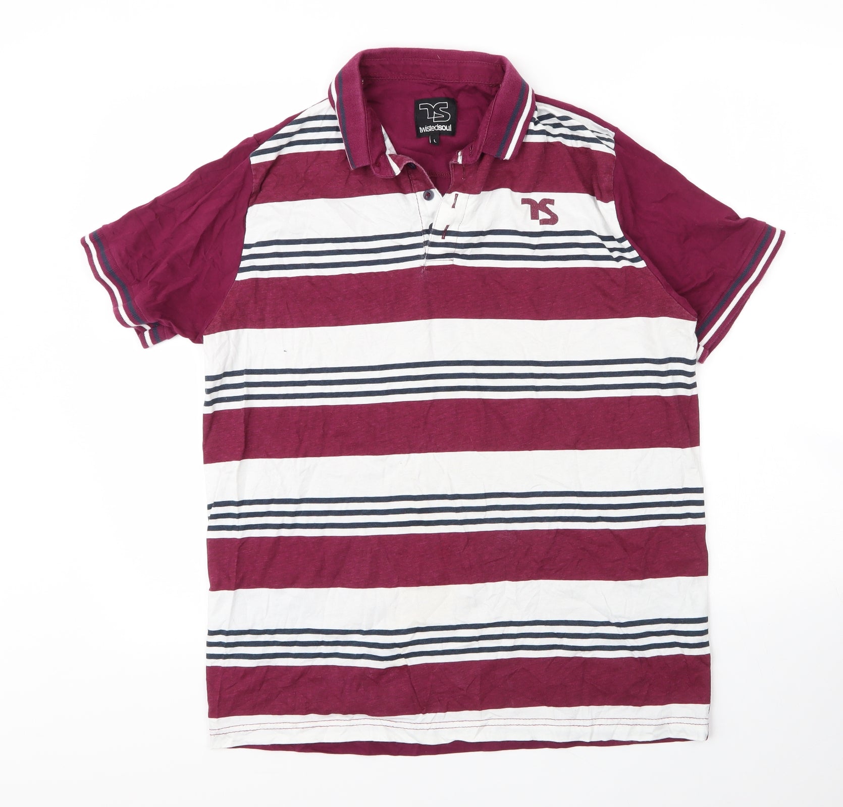 Twisted Soul Mens Purple Striped Cotton Polo Size L Collared Button