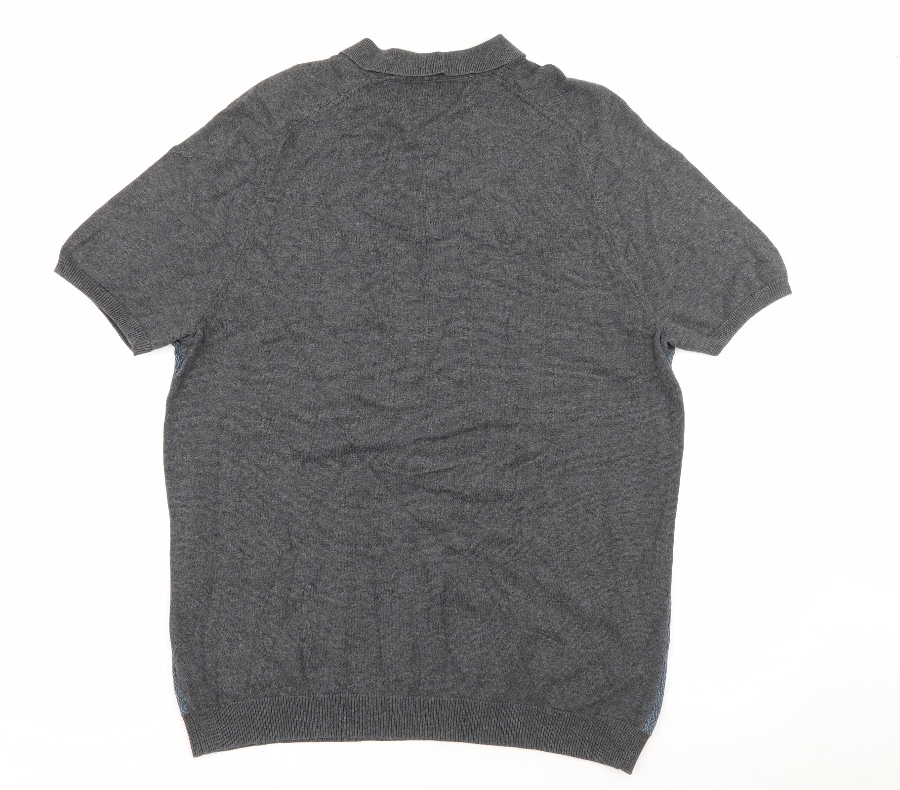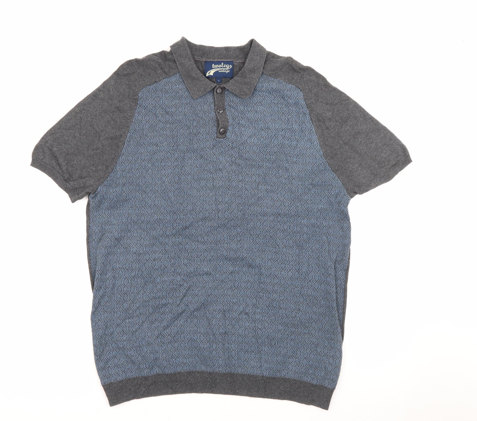 Twolegs Mens Blue Cotton Polo Size L Collared Button