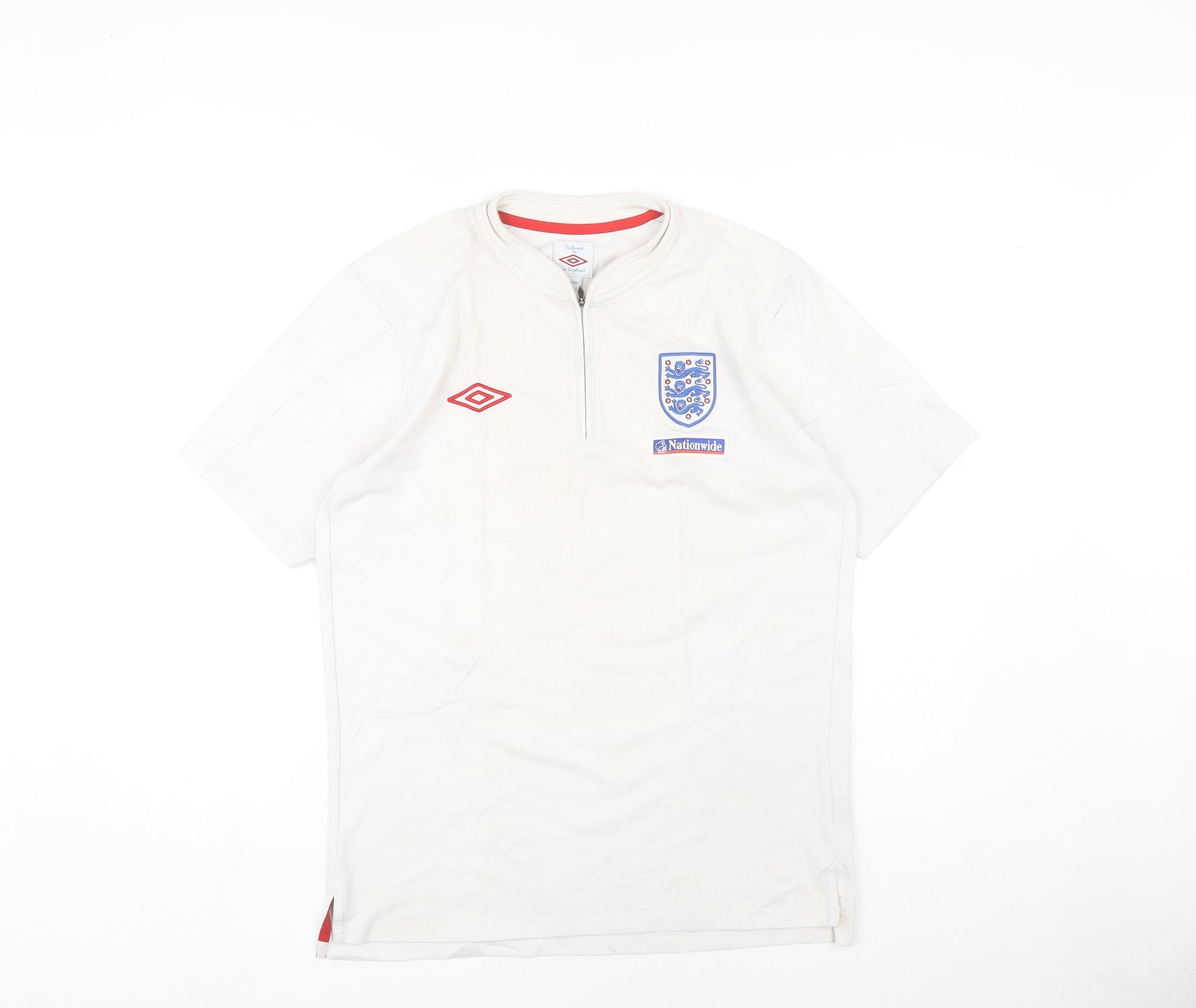 Umbro England White Sports T-Shirt Men L 1/2 Zip