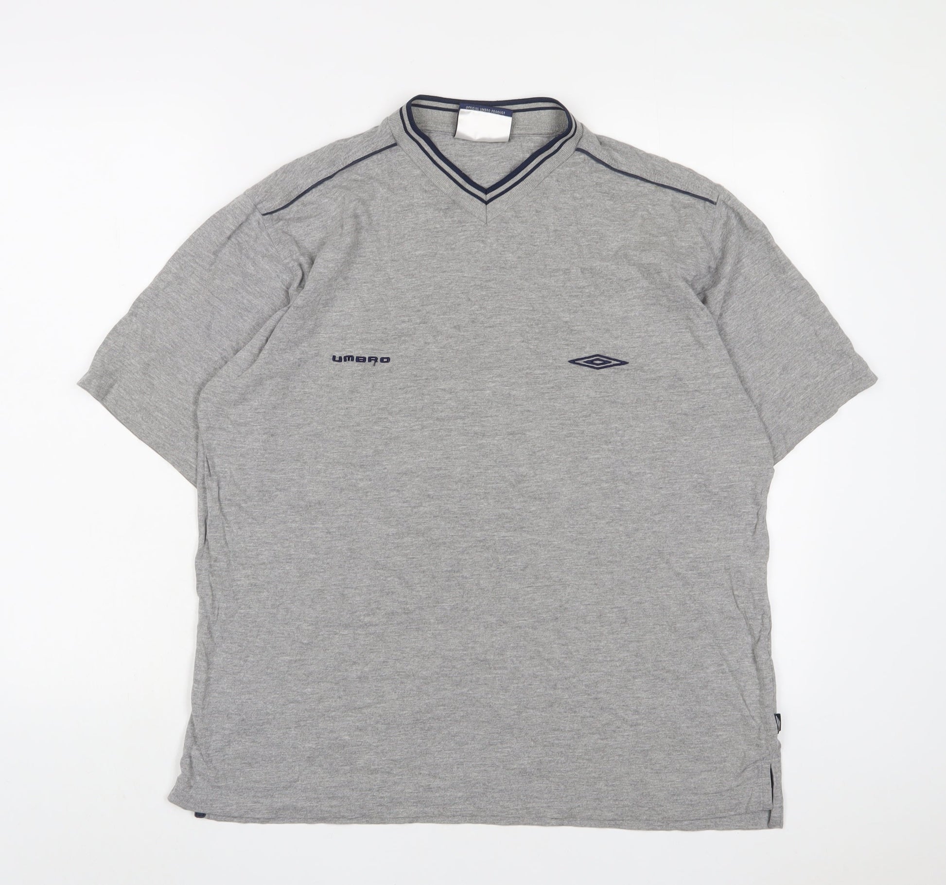 Umbro Mens Grey Cotton T-Shirt Size L V-Neck - Logo, Embroidered