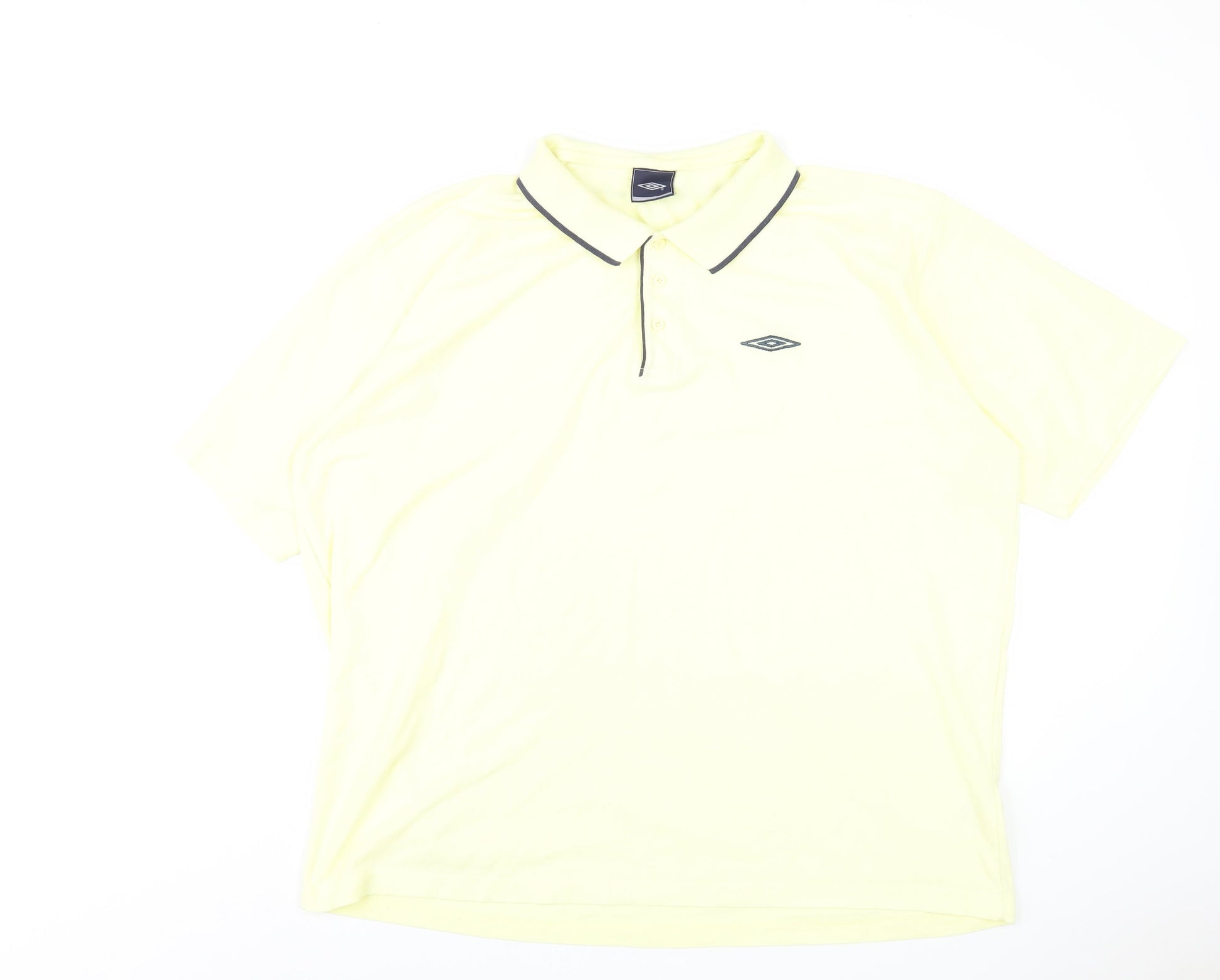 Umbro Mens Yellow Polyester Polo Size 2XL Collared Button