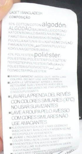 - Material Breakdown: 60% Cotton 40% Polyester
