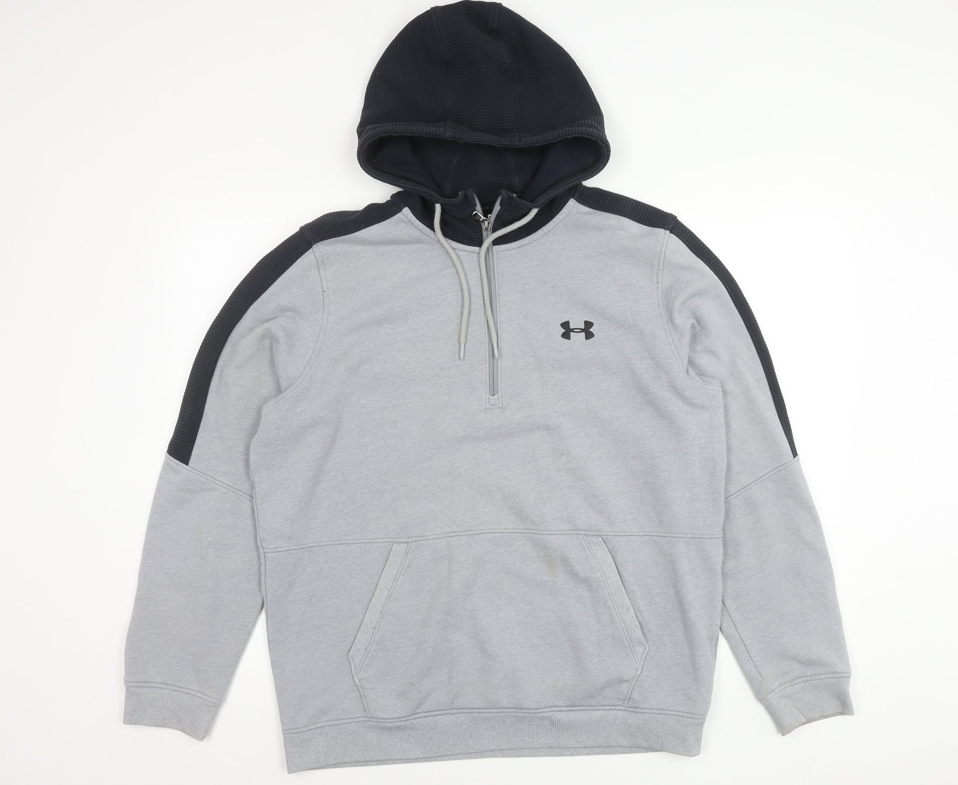 Under Armour Mens Grey L Hoodie 1/2 Zip Logo Sportswear Fleece