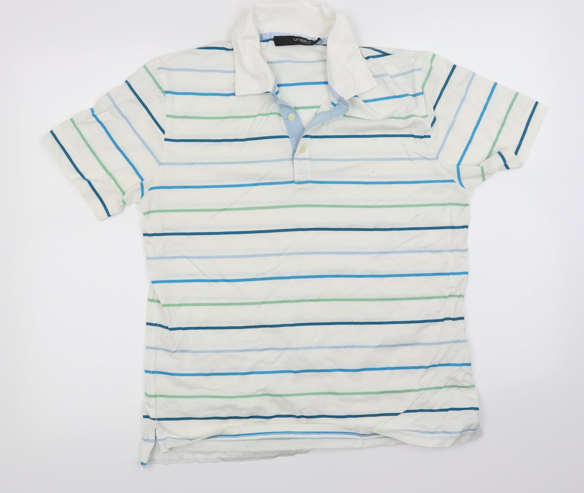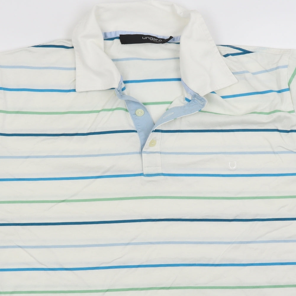 Ungaro Mens White Striped Polo Size M