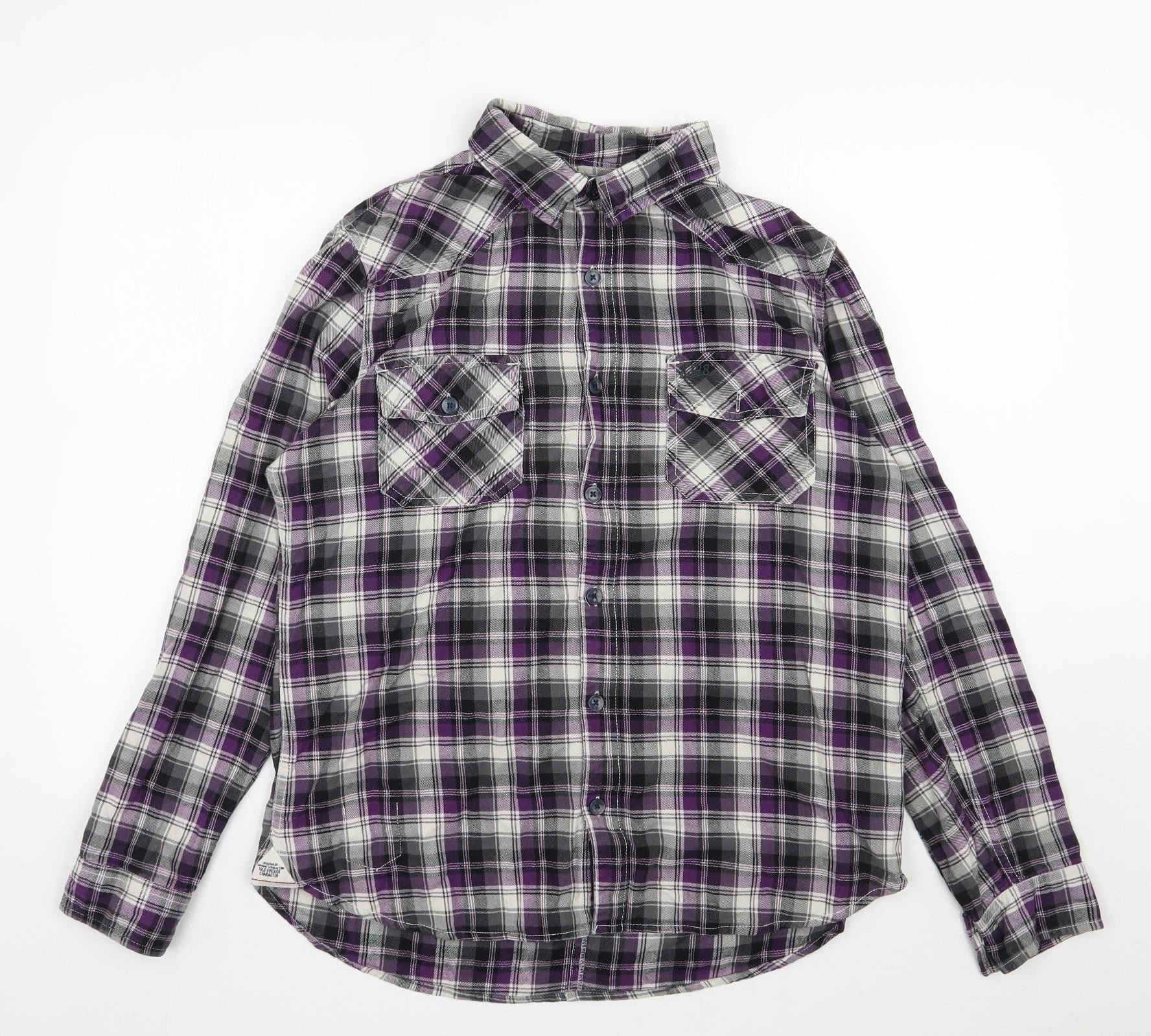 UNION MADE Mens Grey Plaid Cotton Button-Up Size L Collared Button