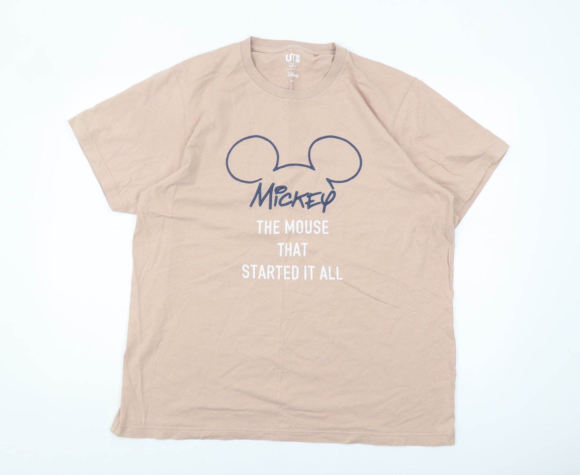 Uniqlo Disney Beige XL Men's T-Shirt - Mickey Mouse Crew Neck