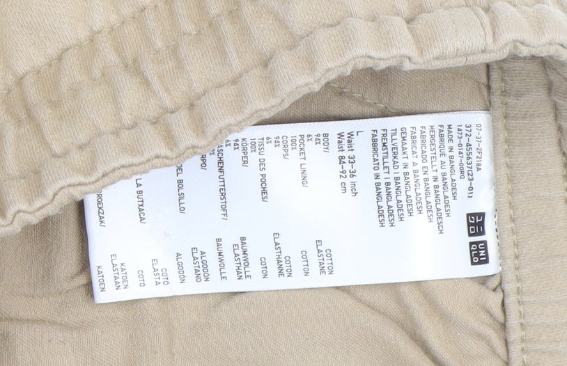 UNIQLO Men Beige Elastic Waist Cotton Blend Jogger Trousers 33-36in Waist