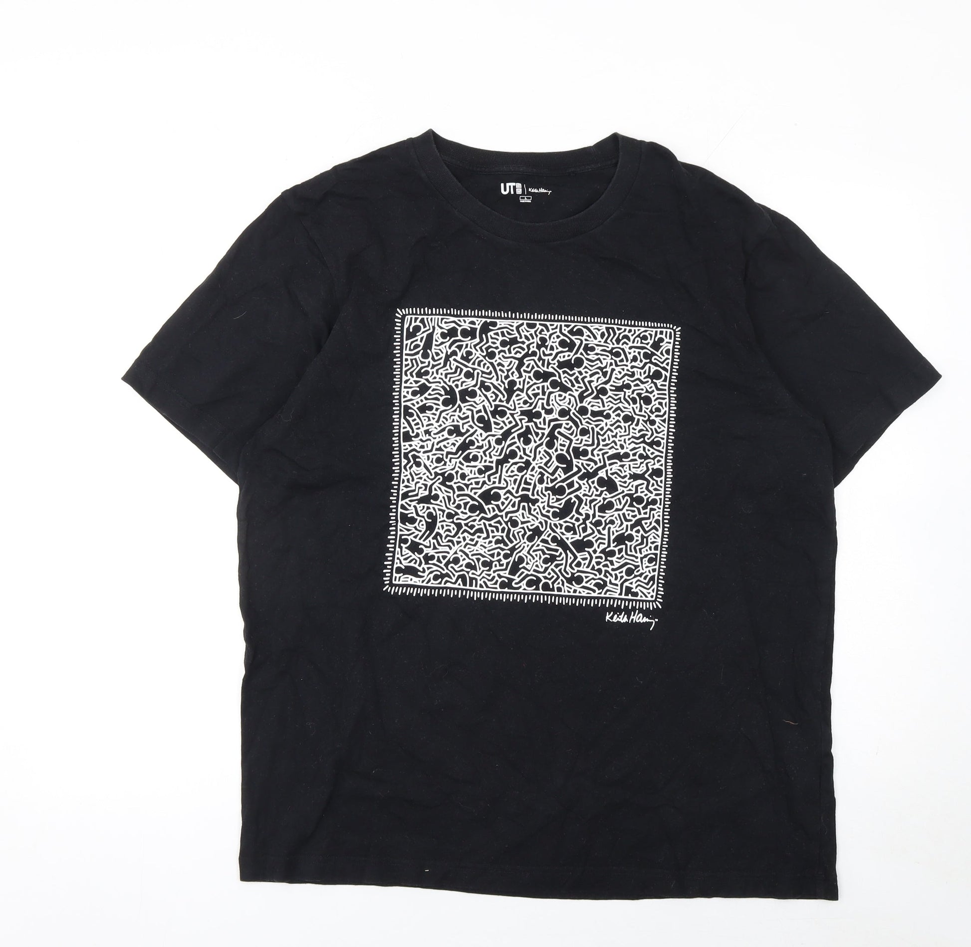 Uniqlo Men Black Keith Haring Graphic Print Short Sleeve T-Shirt Size M