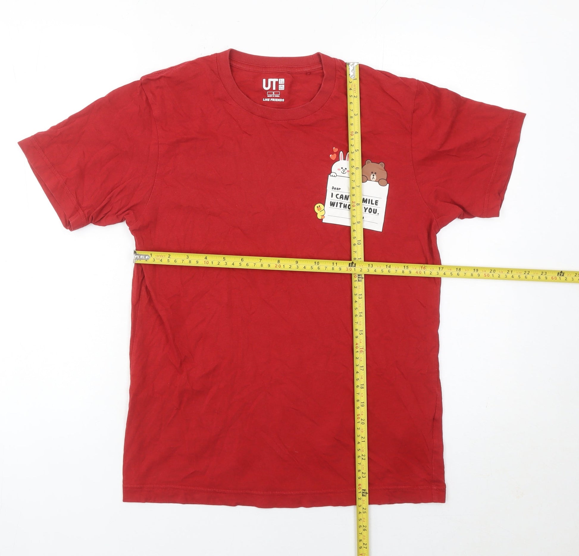 Uniqlo Men Red Line Friends Graphic Cotton Crew Neck T-Shirt Size S