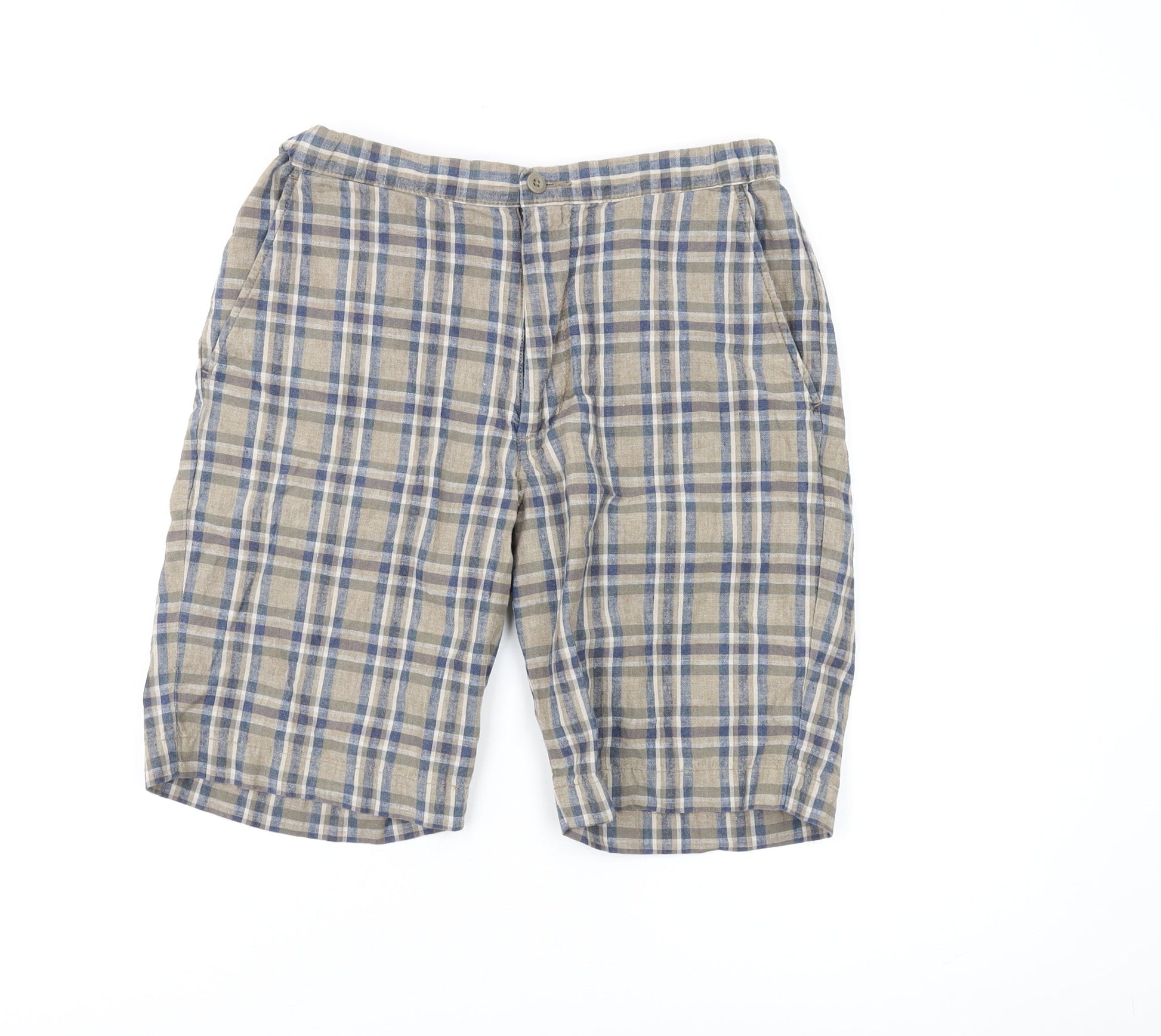 UNIQLO Men's Beige Blue Plaid Chino Shorts S