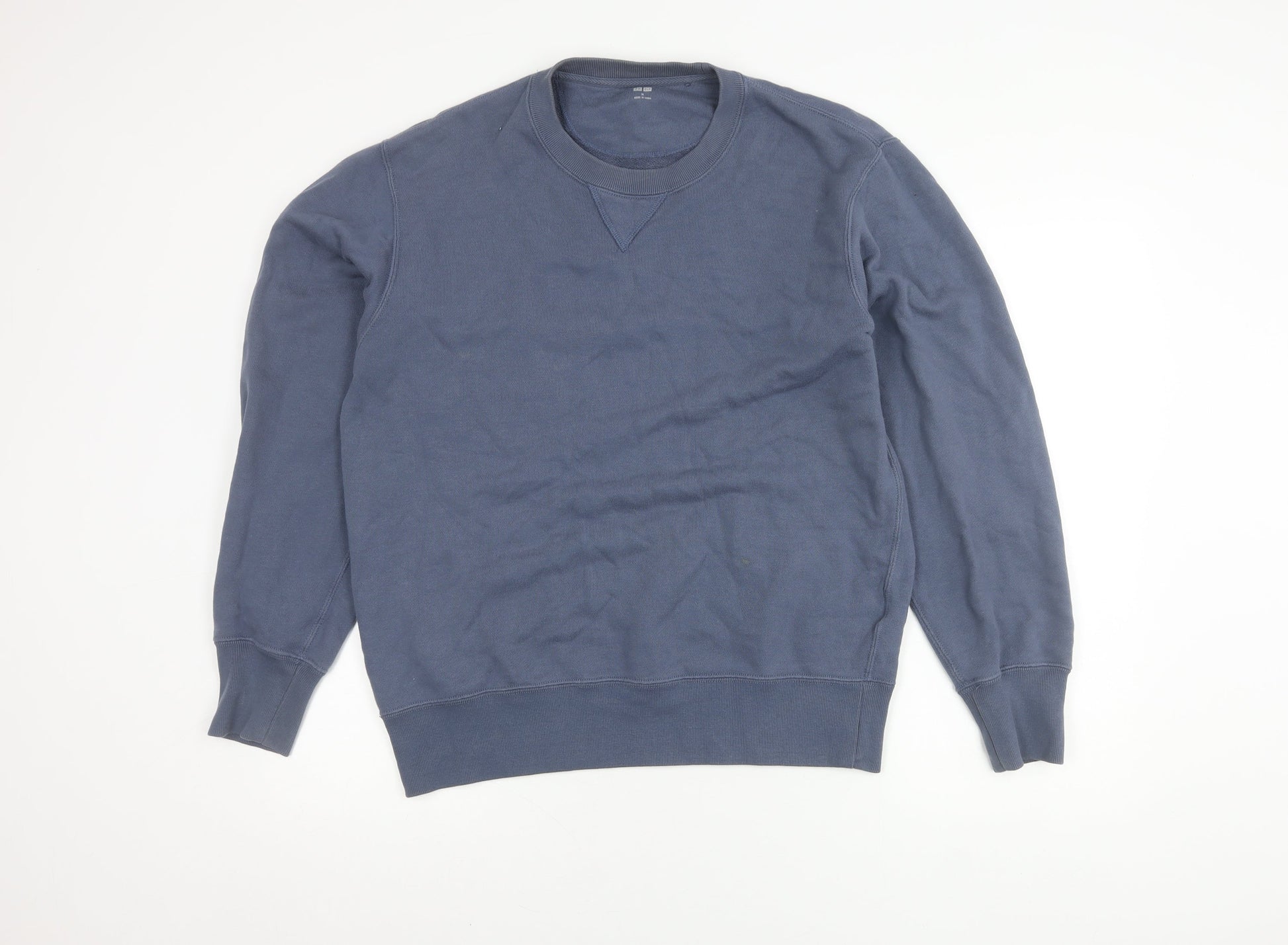 Uniqlo Men's Blue Pullover Sweatshirt M Knit Cotton Blend