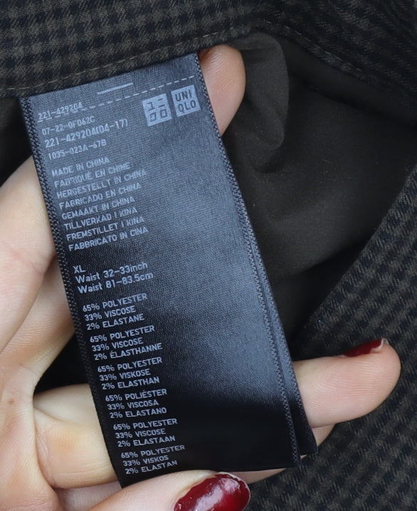 UNIQLO Mens Brown Check Trousers XL Elastic Waist Relaxed Fit