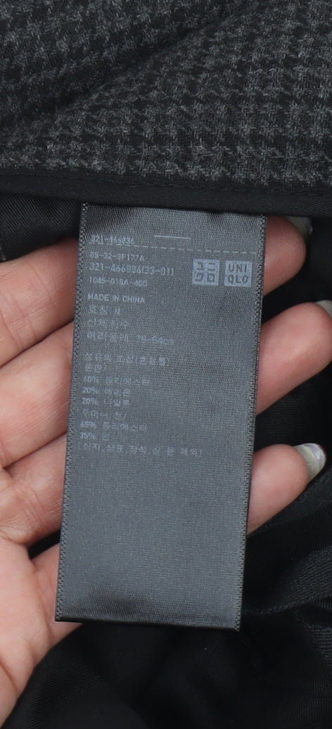 UNIQLO Men's Grey Checked Smart Trousers Size M Classic Fit