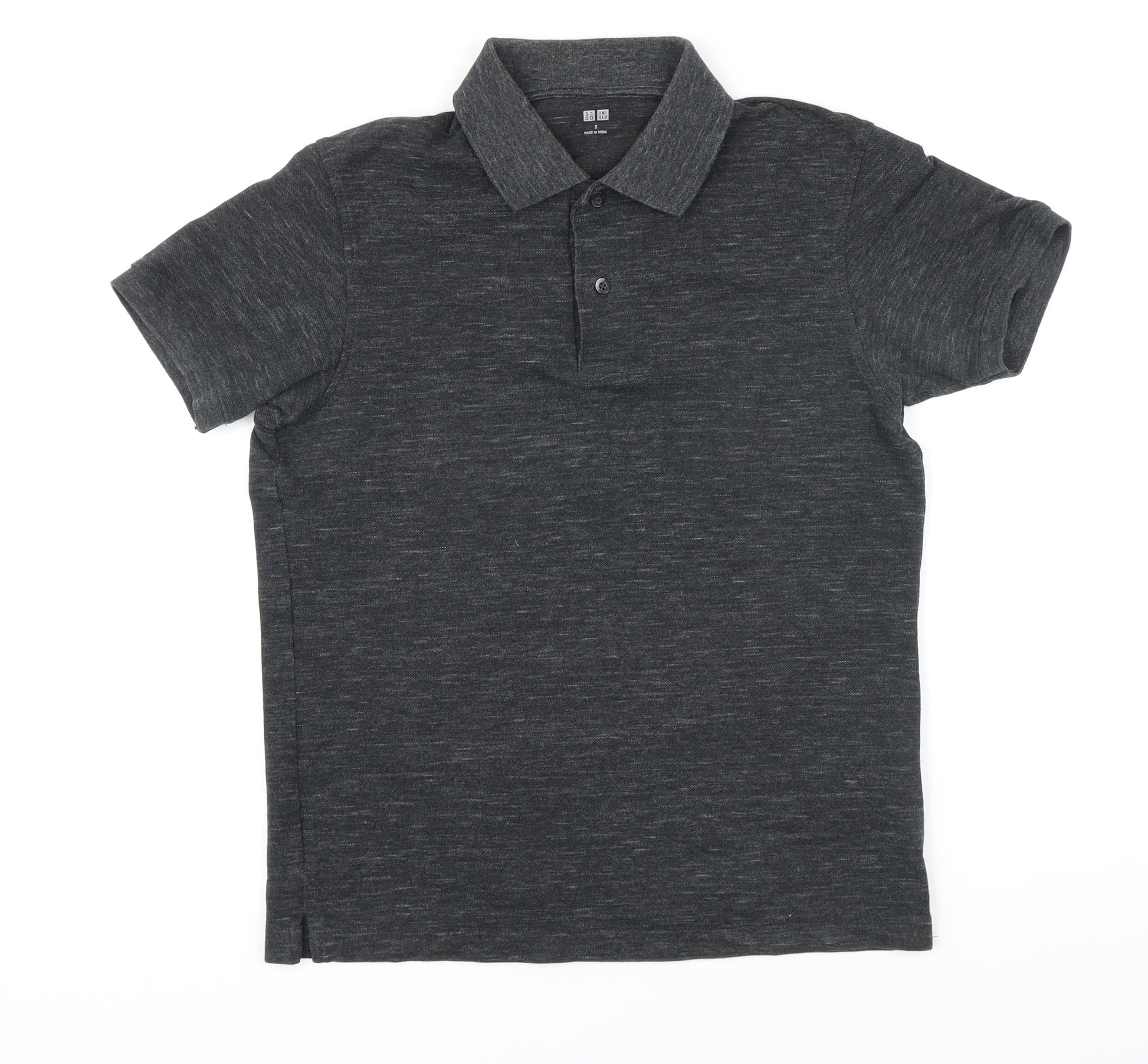 Uniqlo Mens Grey Cotton Polo Size S Collared Button