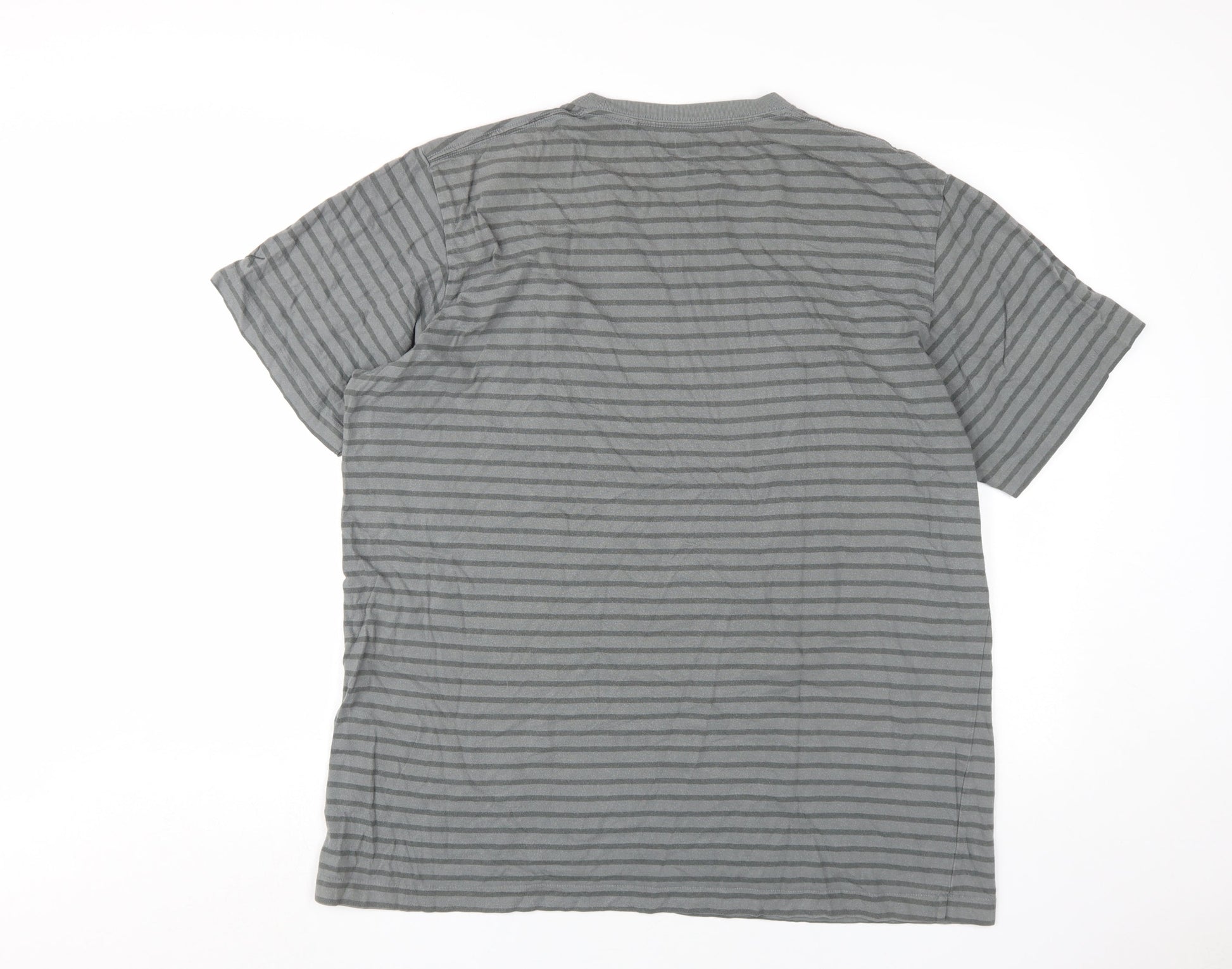 UNIQLO Men's Grey Striped Kaws Crew Neck T-Shirt XL
