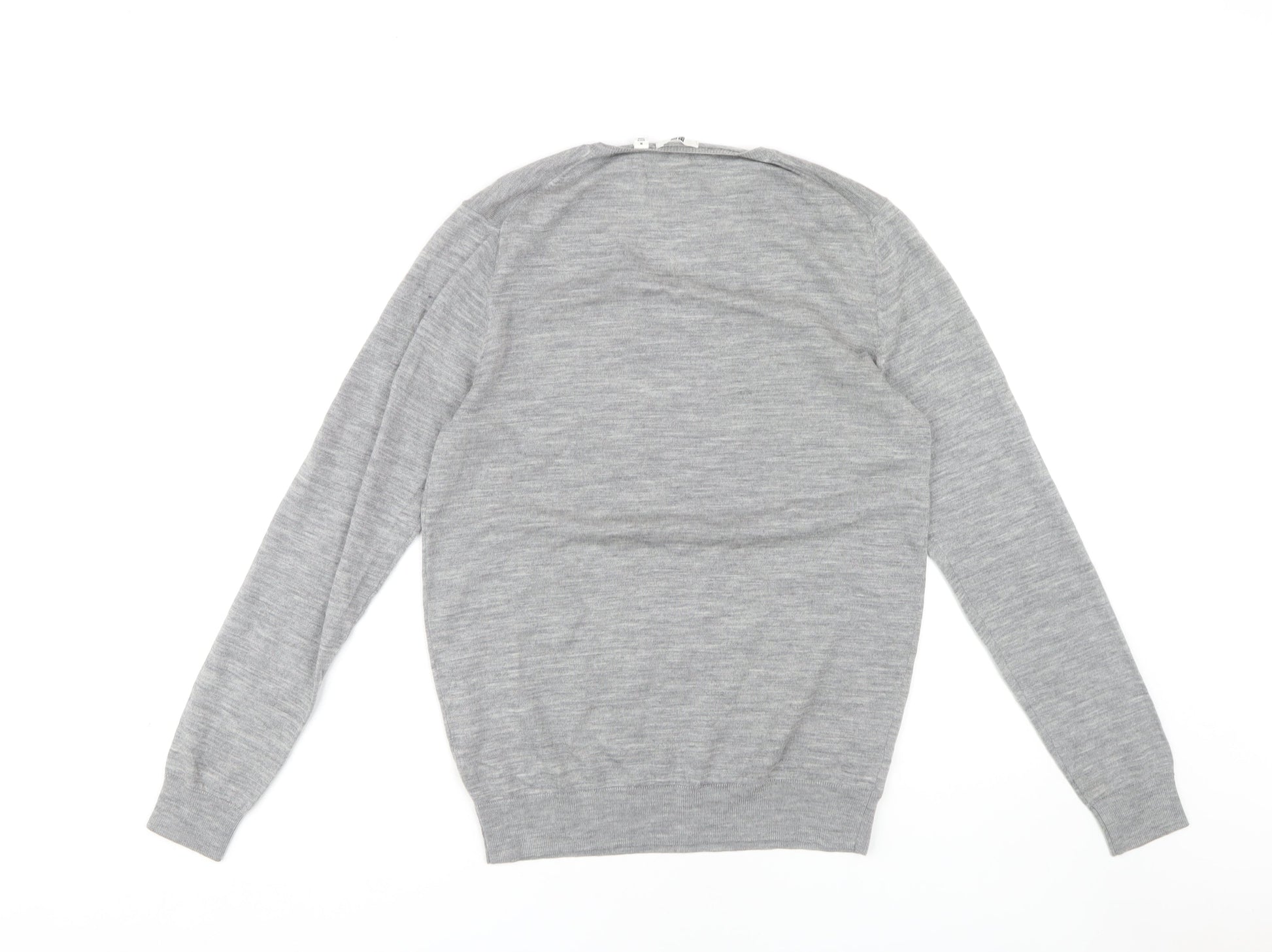 Uniqlo Men's Grey Wool V-Neck Pullover Jumper M