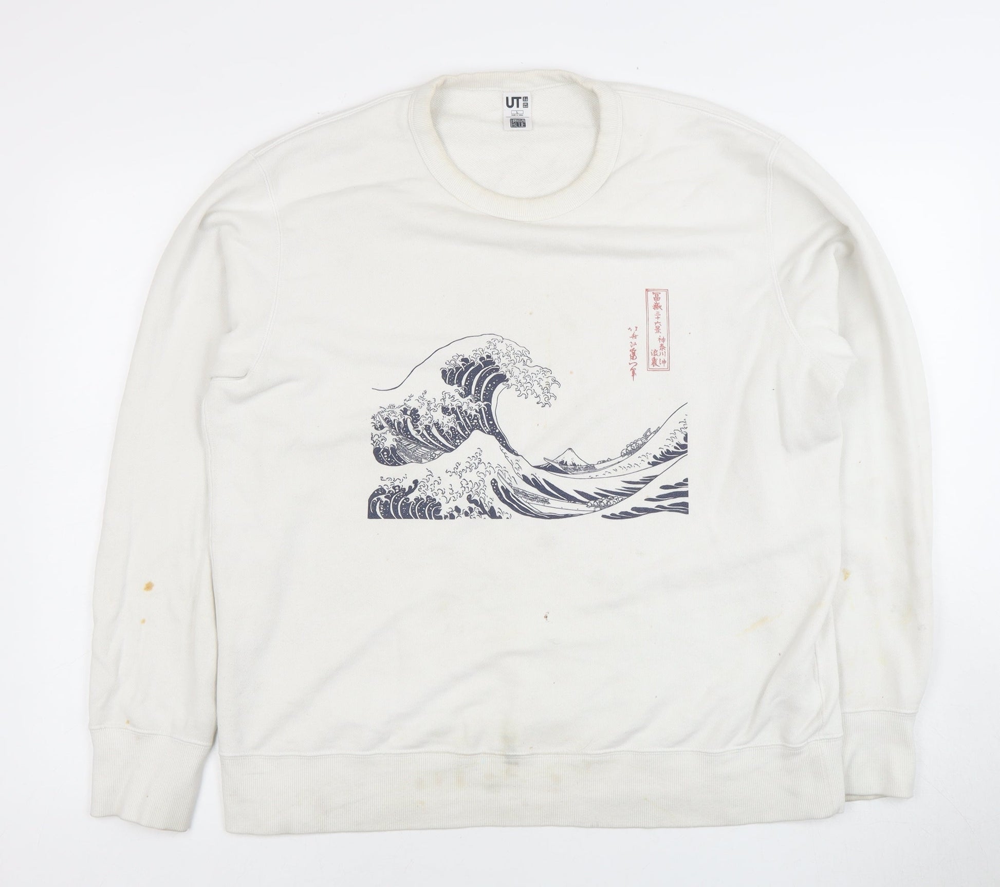 Uniqlo Men's White Art Graphic Pullover Sweatshirt L
