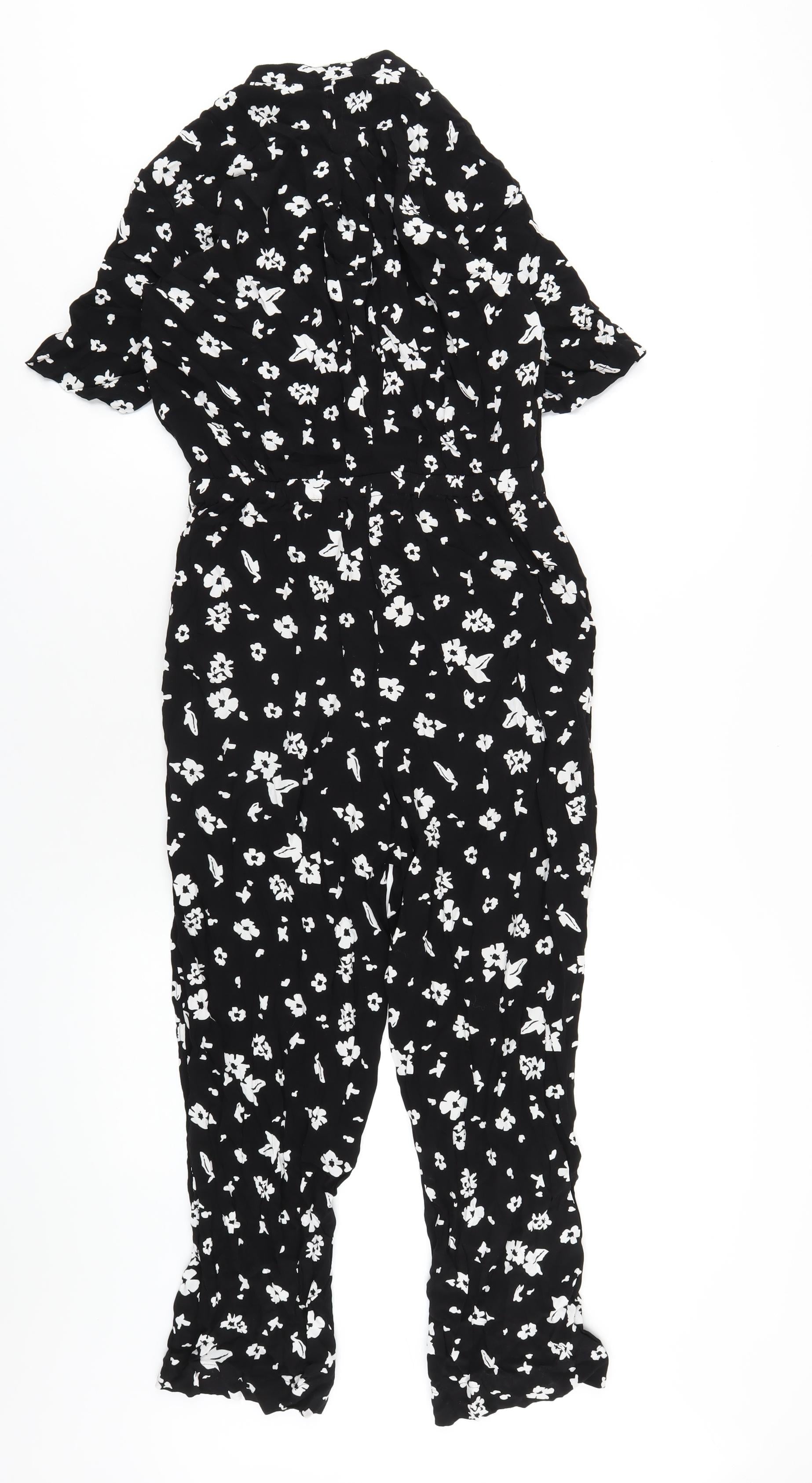 Uniqlo Womens Black Floral Viscose Jumpsuit One-Piece Size XS L24 in Button