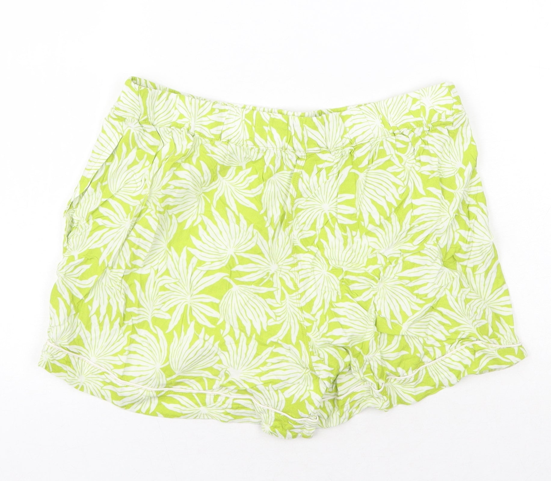 Uniqlo Womens Green Floral Viscose Bermuda Shorts Size M Regular Pull On