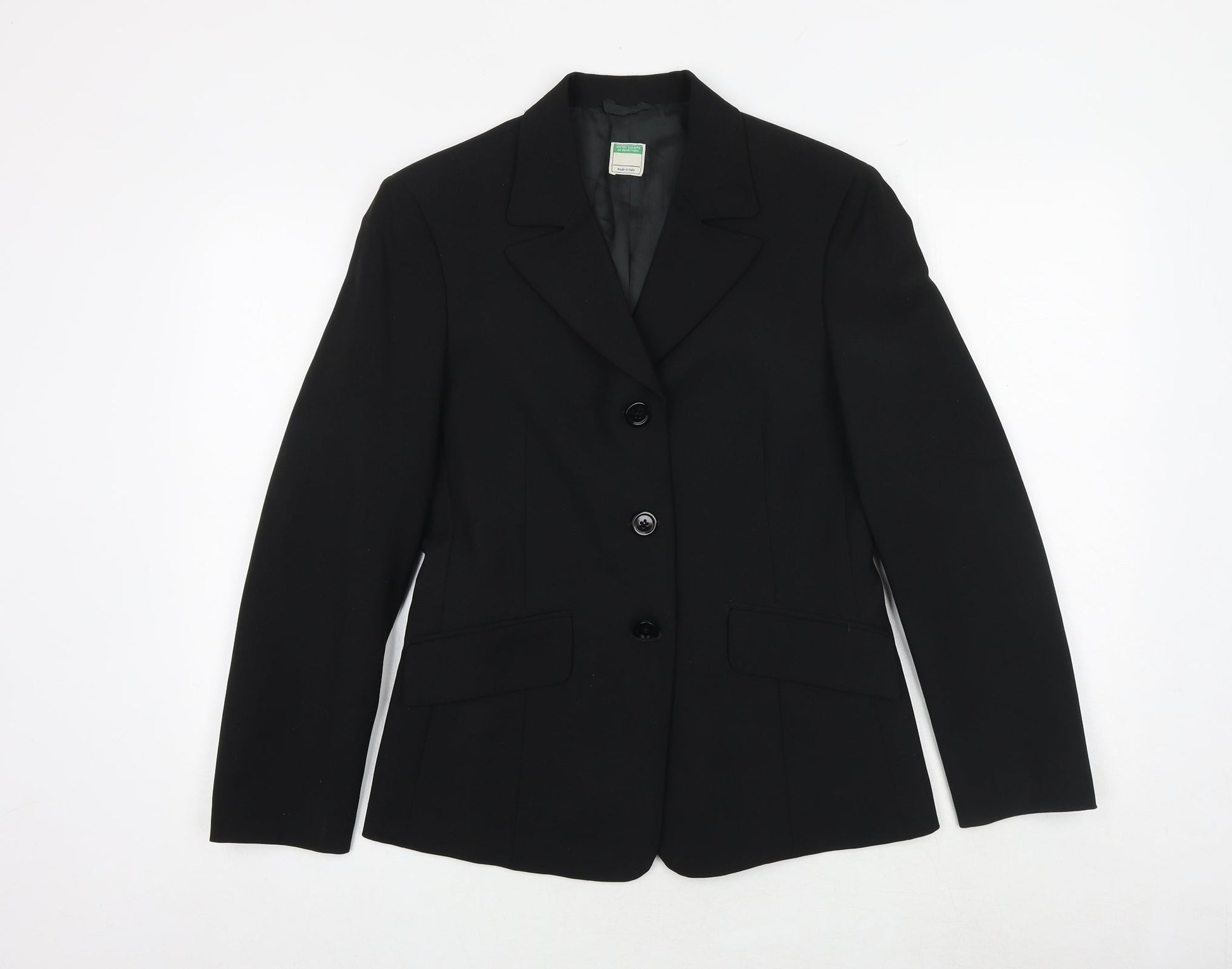United Colors of Benetton Womens Black Polyester Jacket Suit Jacket Size 14
