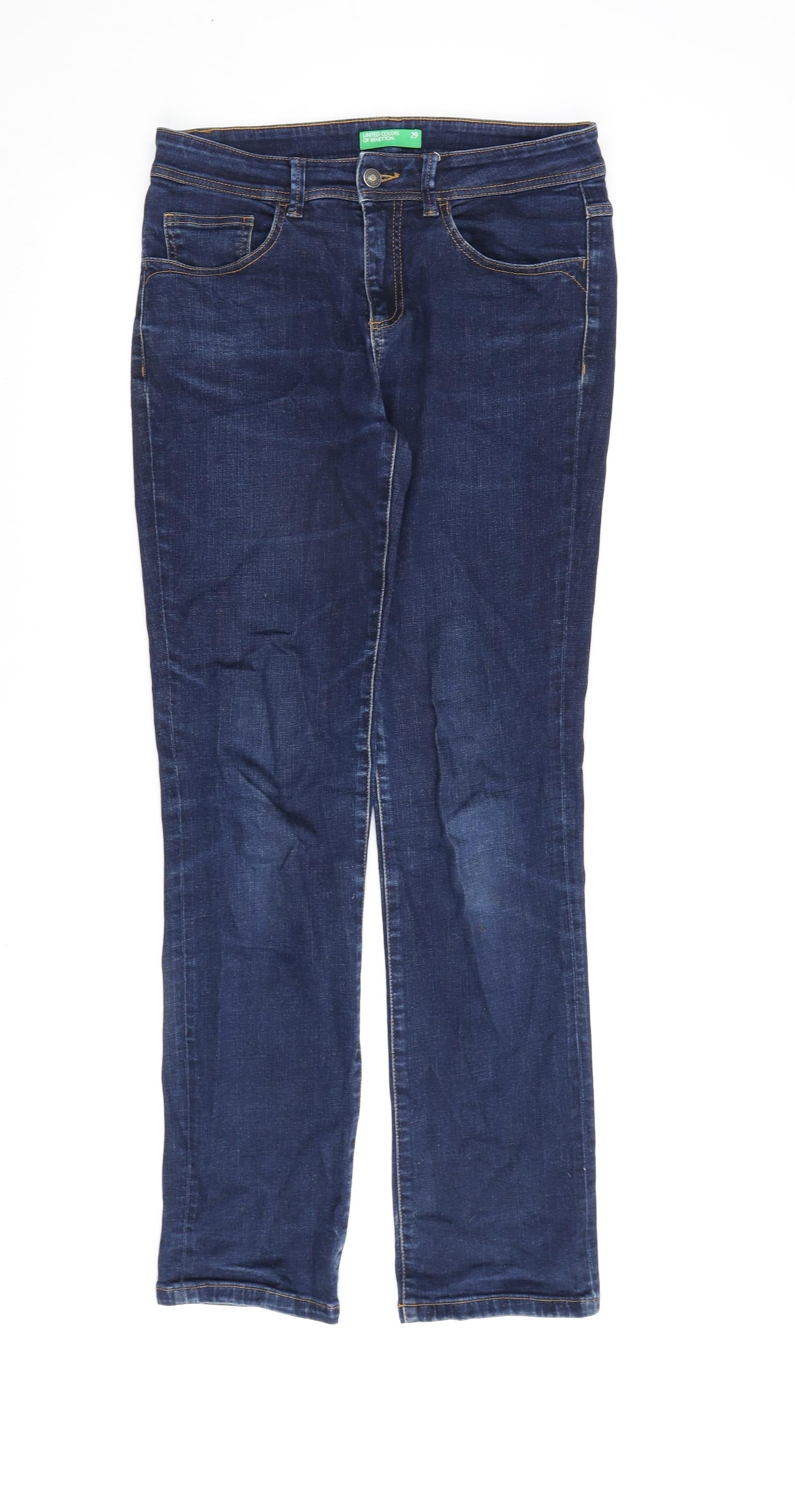 United Colors of Benetton Womens Blue Cotton Straight Jeans Size 29 in L29 in Regular Zip