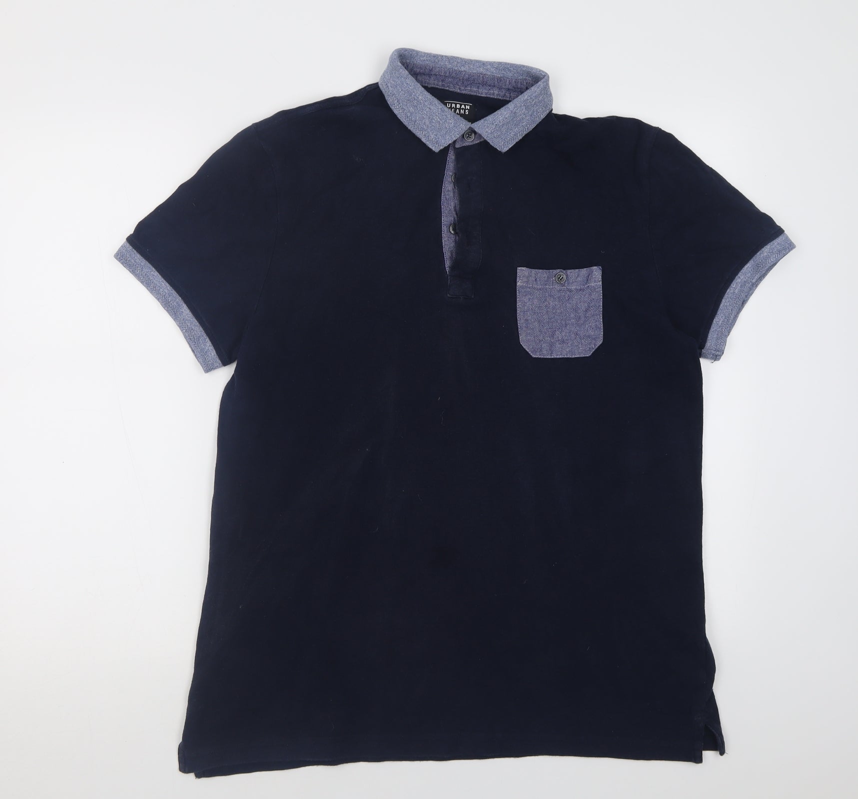 urban jeans Mens Blue Cotton Polo Size L Collared Button