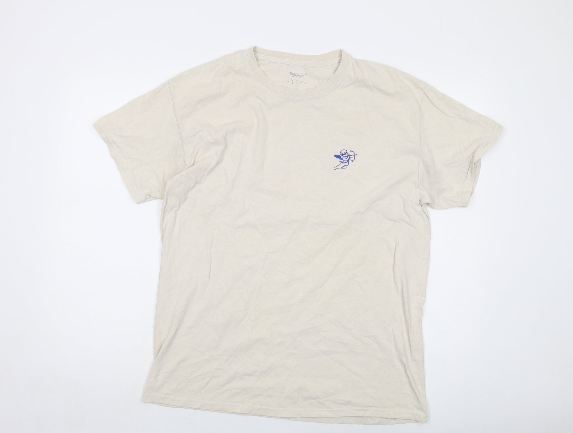 Urban Outfitters Mens Beige Cotton T-Shirt Size S Crew Neck