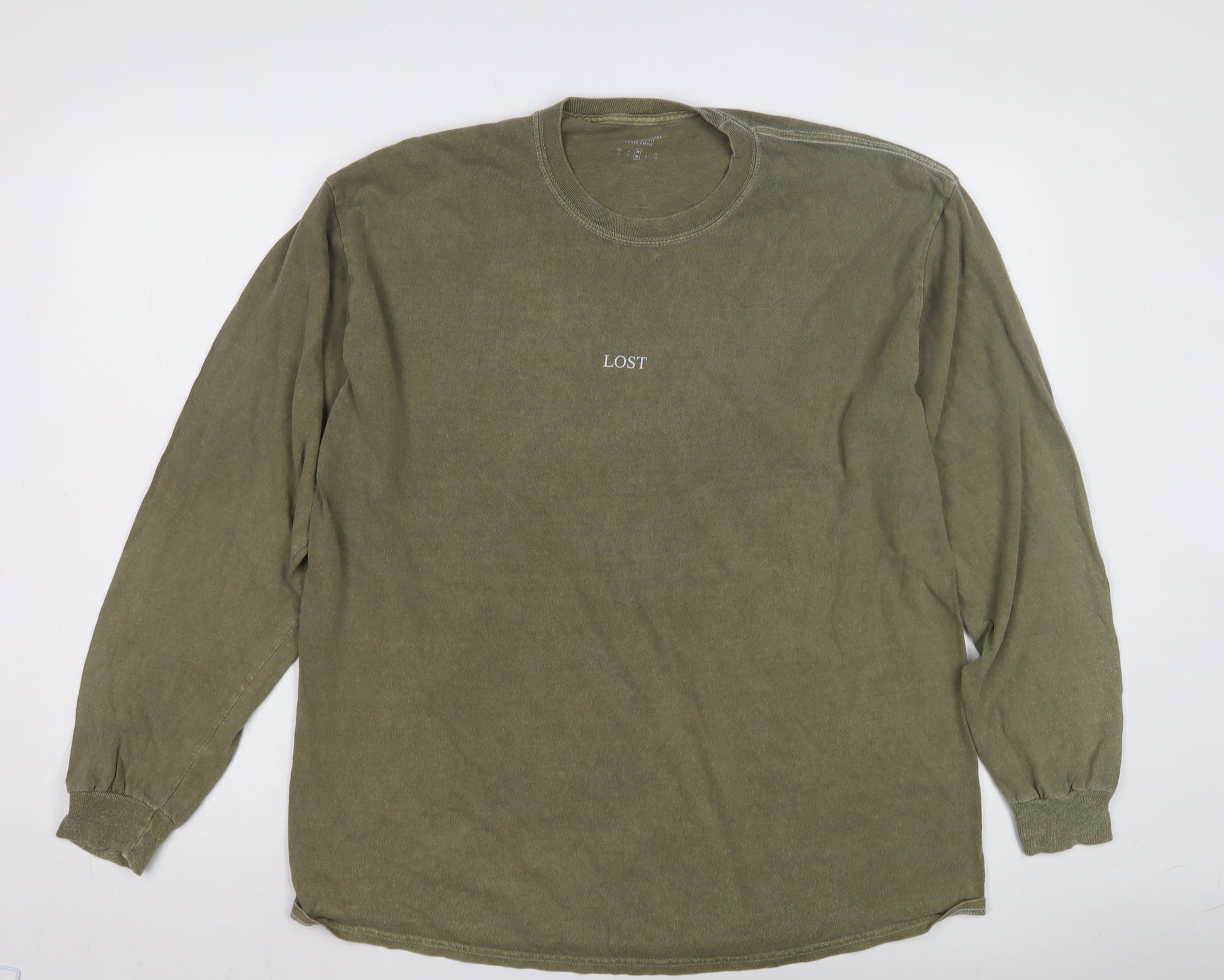 Urban Outfitters Men's Green Oversized Long Sleeve T-Shirt