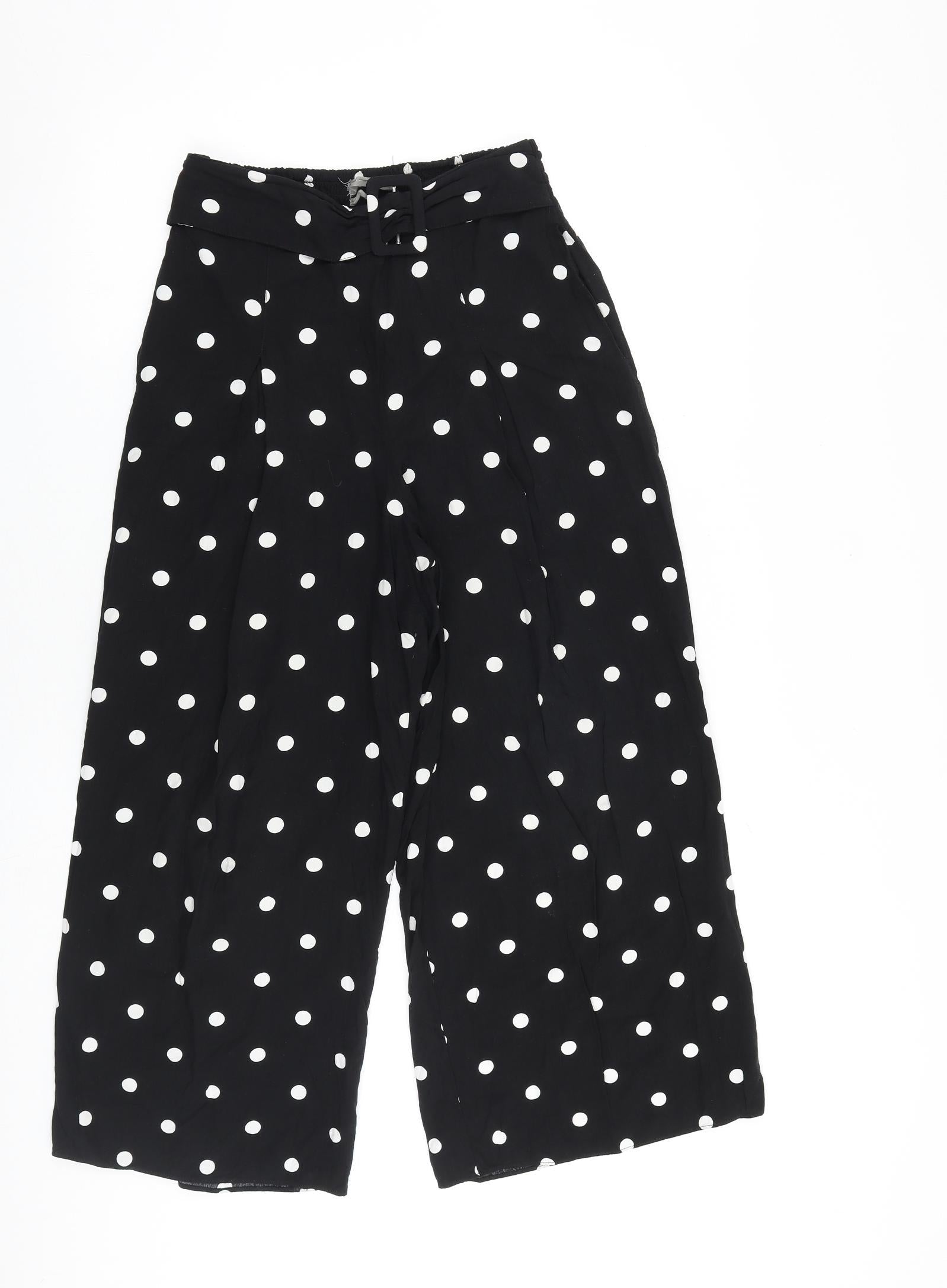 Urban Outfitters Womens Black Polka Dot Viscose Trousers Size 26 in L25 in Regular Buckle
