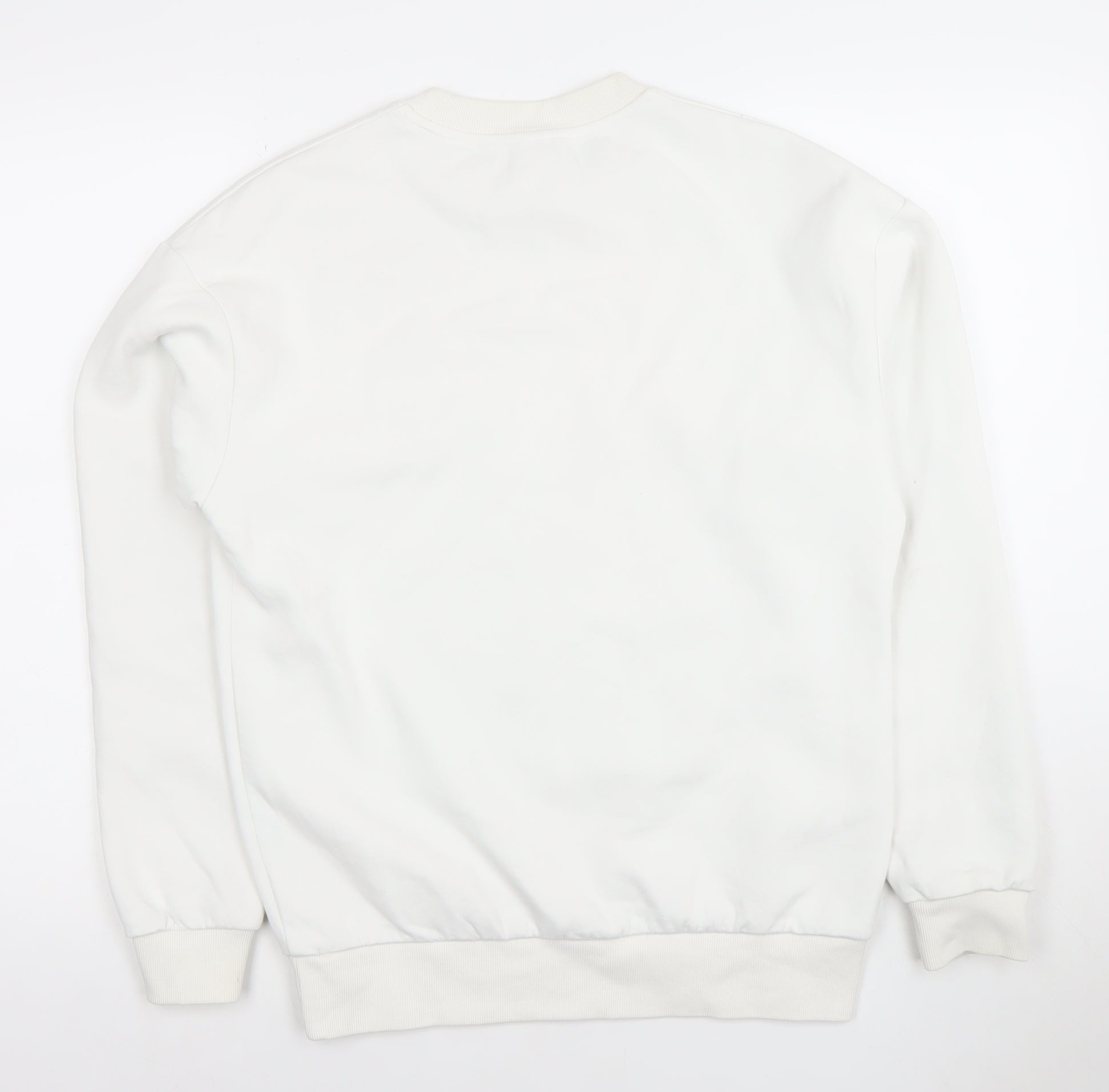 Urban Revivo Men's White Cotton Blend Crew Neck Sweatshirt XS