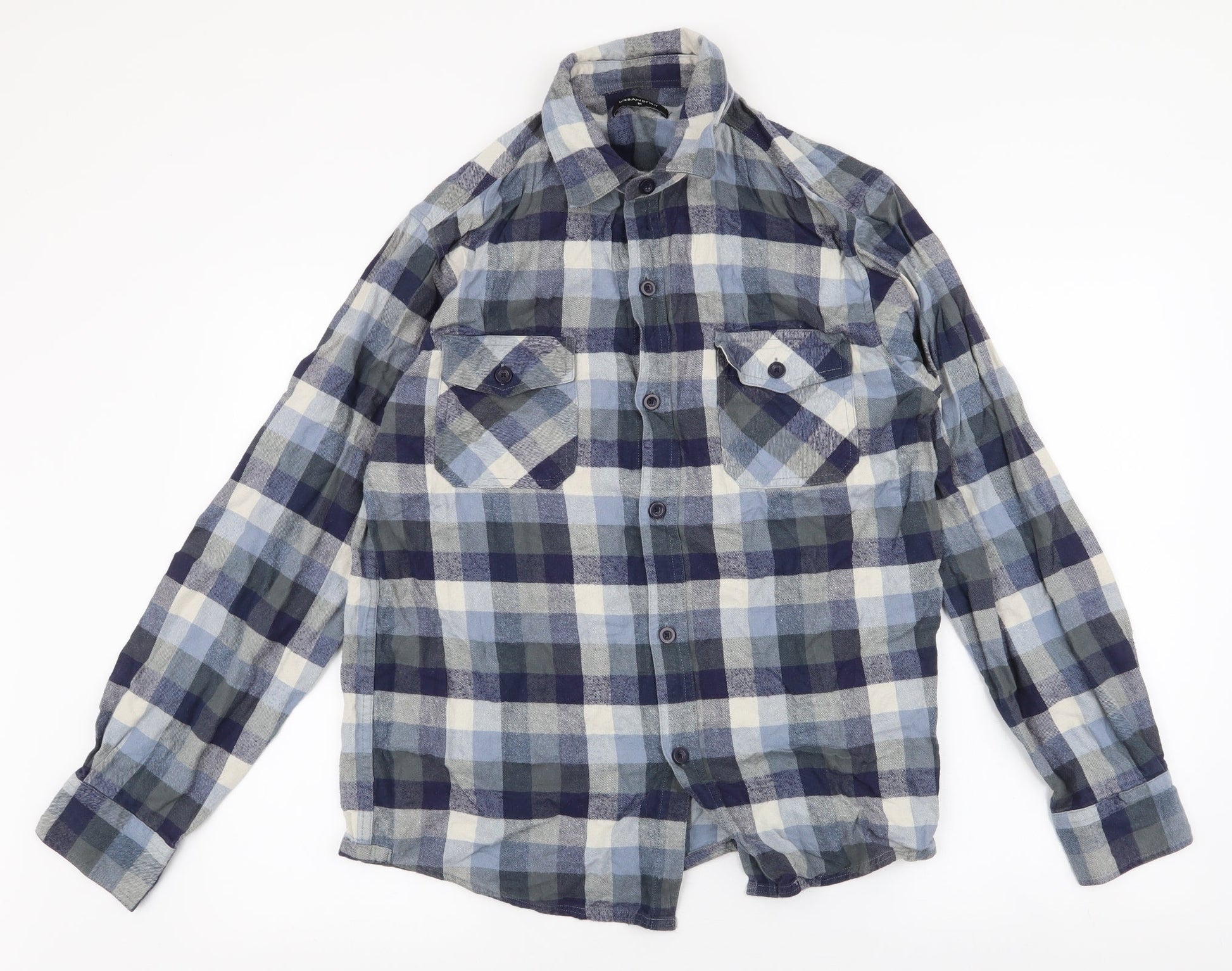 UrbanSpirit Mens Blue Plaid Cotton Button-Up Size M Collared Button