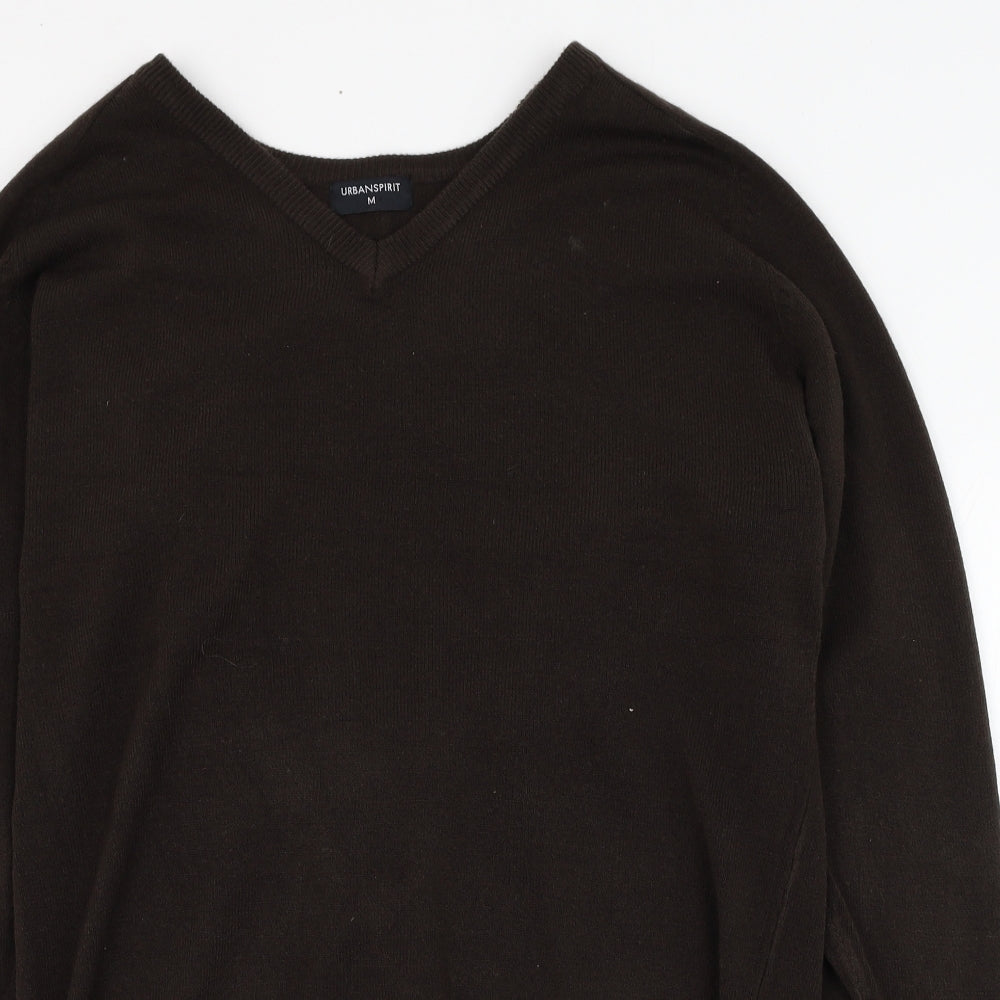 UrbanSpirit Mens Brown V-Neck Acrylic Pullover Jumper Size M