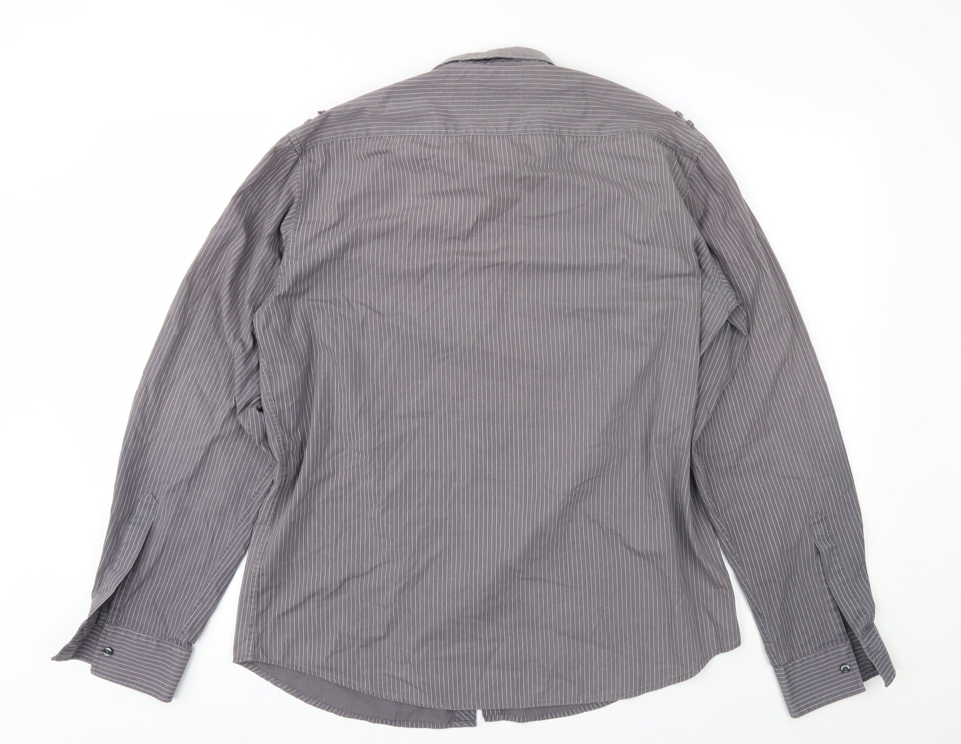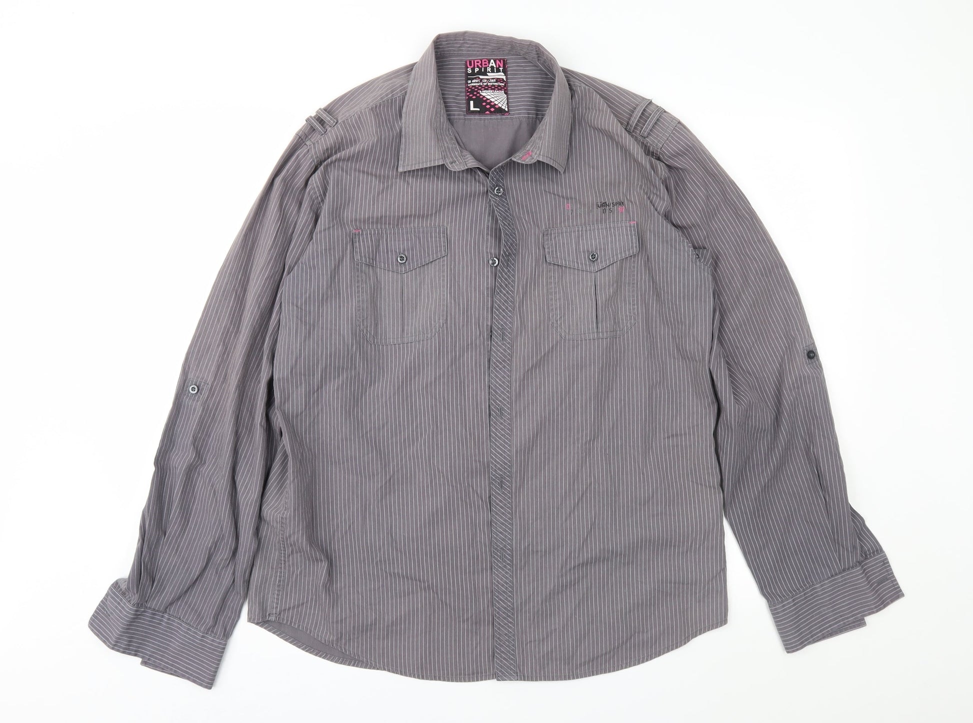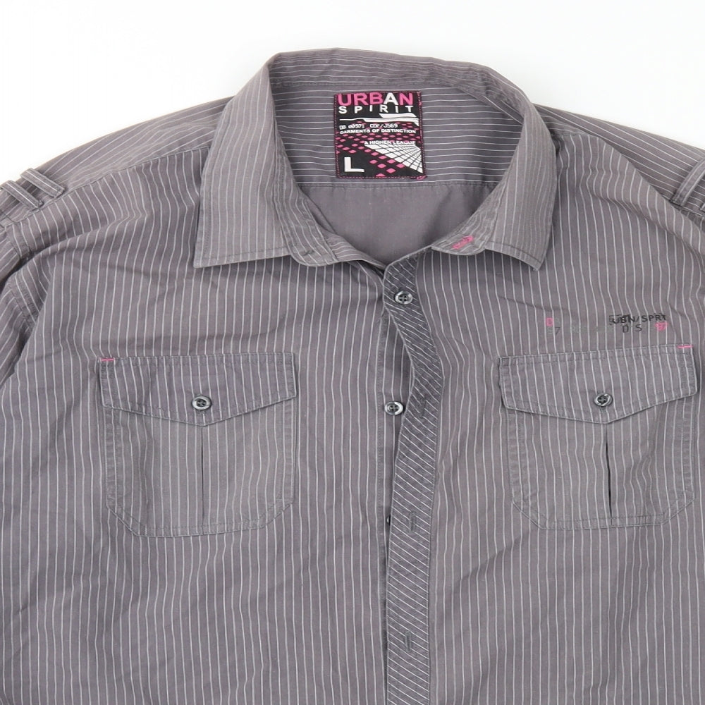 UrbanSpirit Mens Grey Striped Button-Up Size L