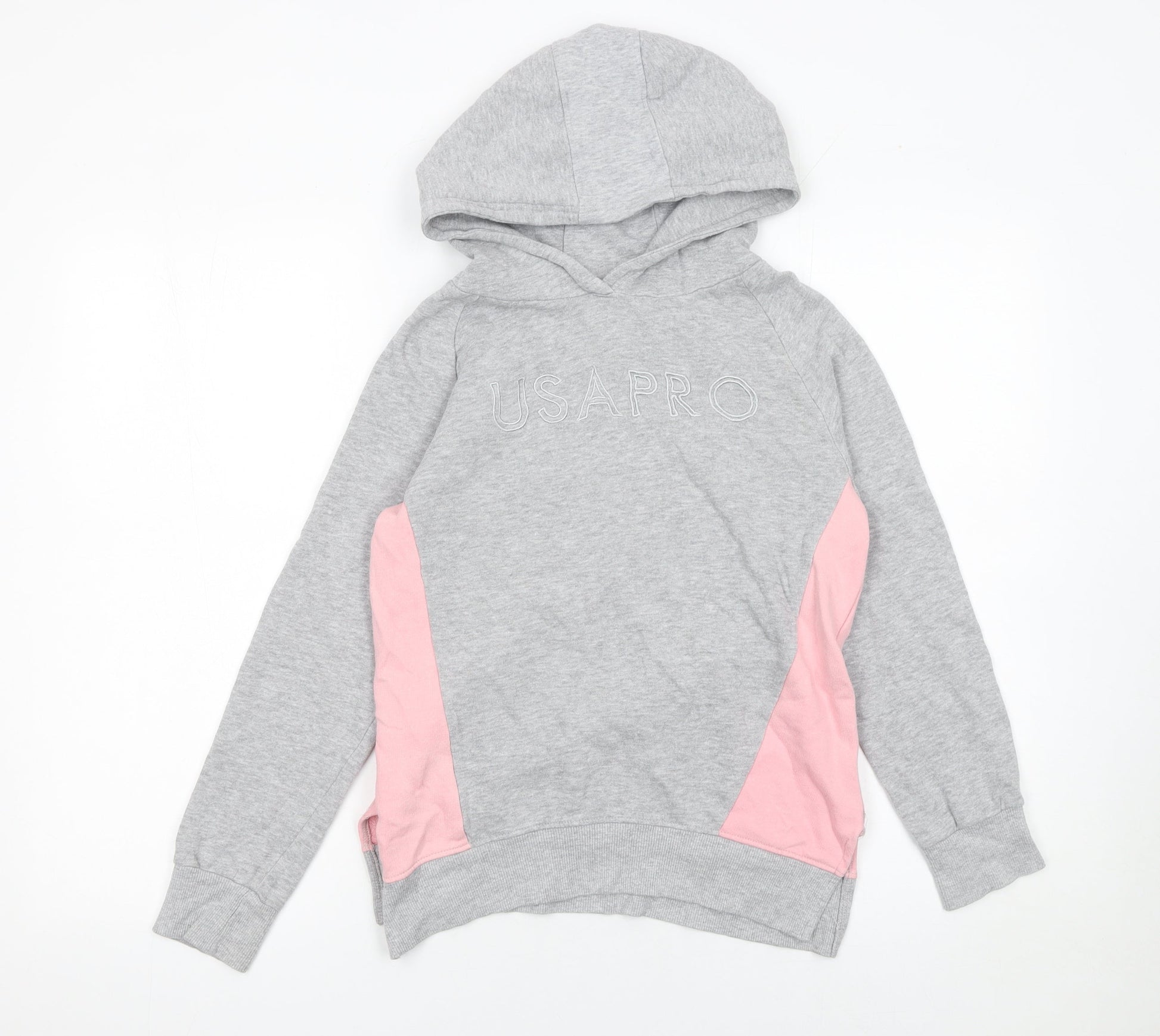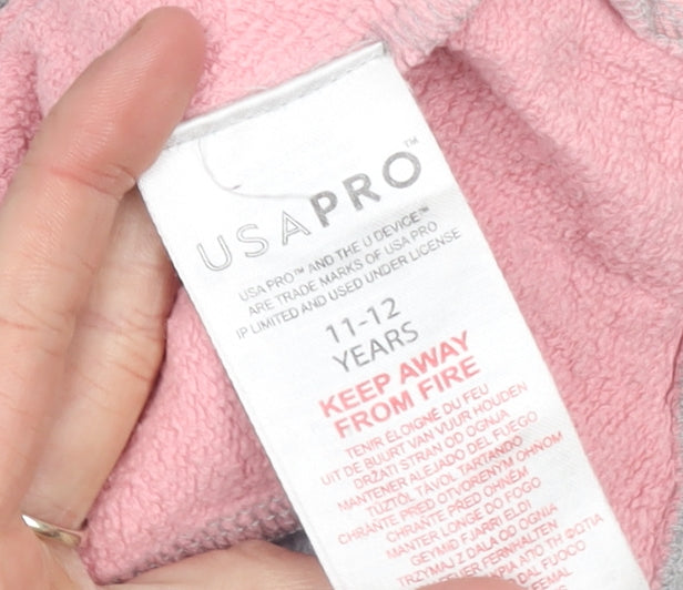 USA Pro Girls Grey & Pink Pullover Hoodie 11-12 Years Cotton Blend