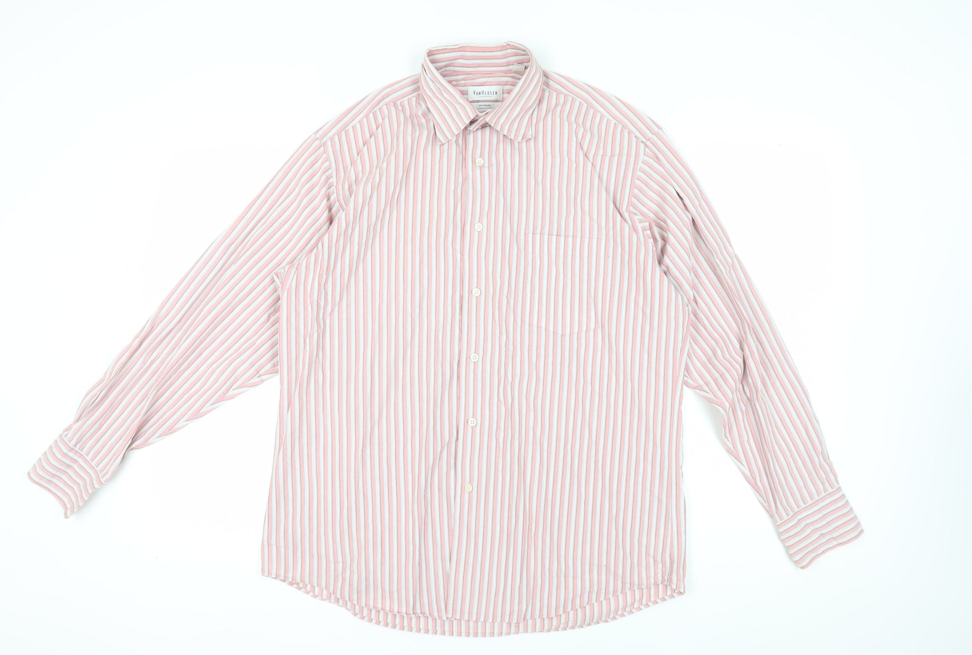 Van Heusen Men's Pink Striped Cotton Dress Shirt M