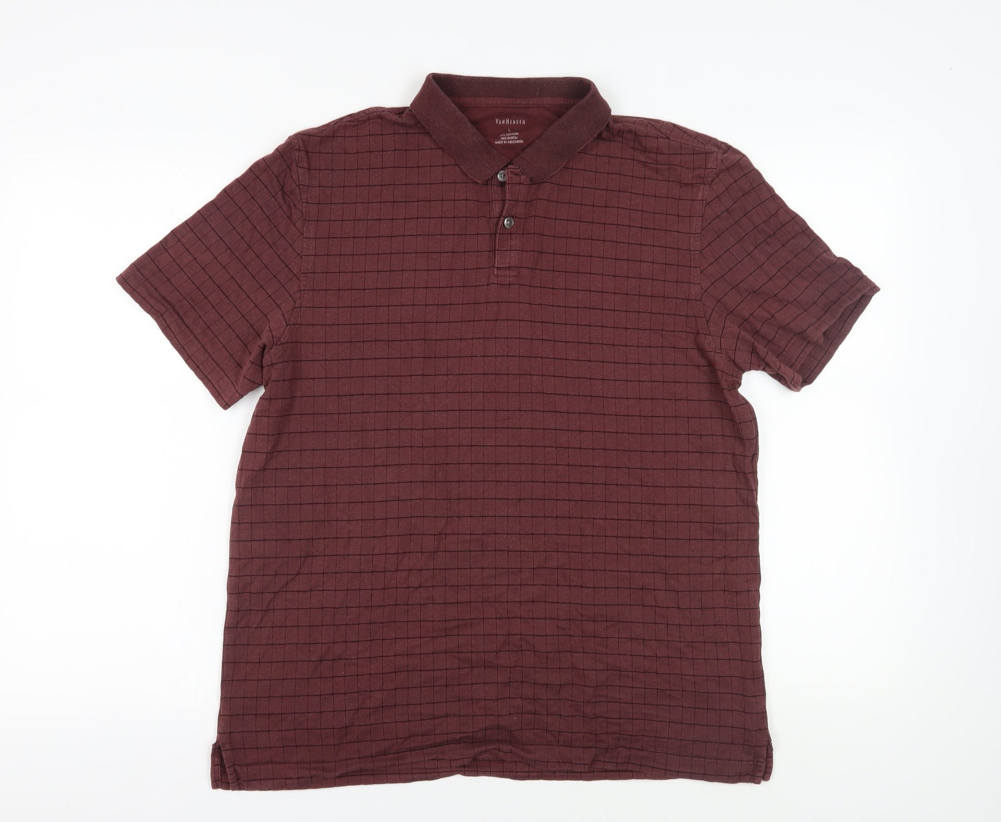 Van Heusen Men's Red Check Polo Size L