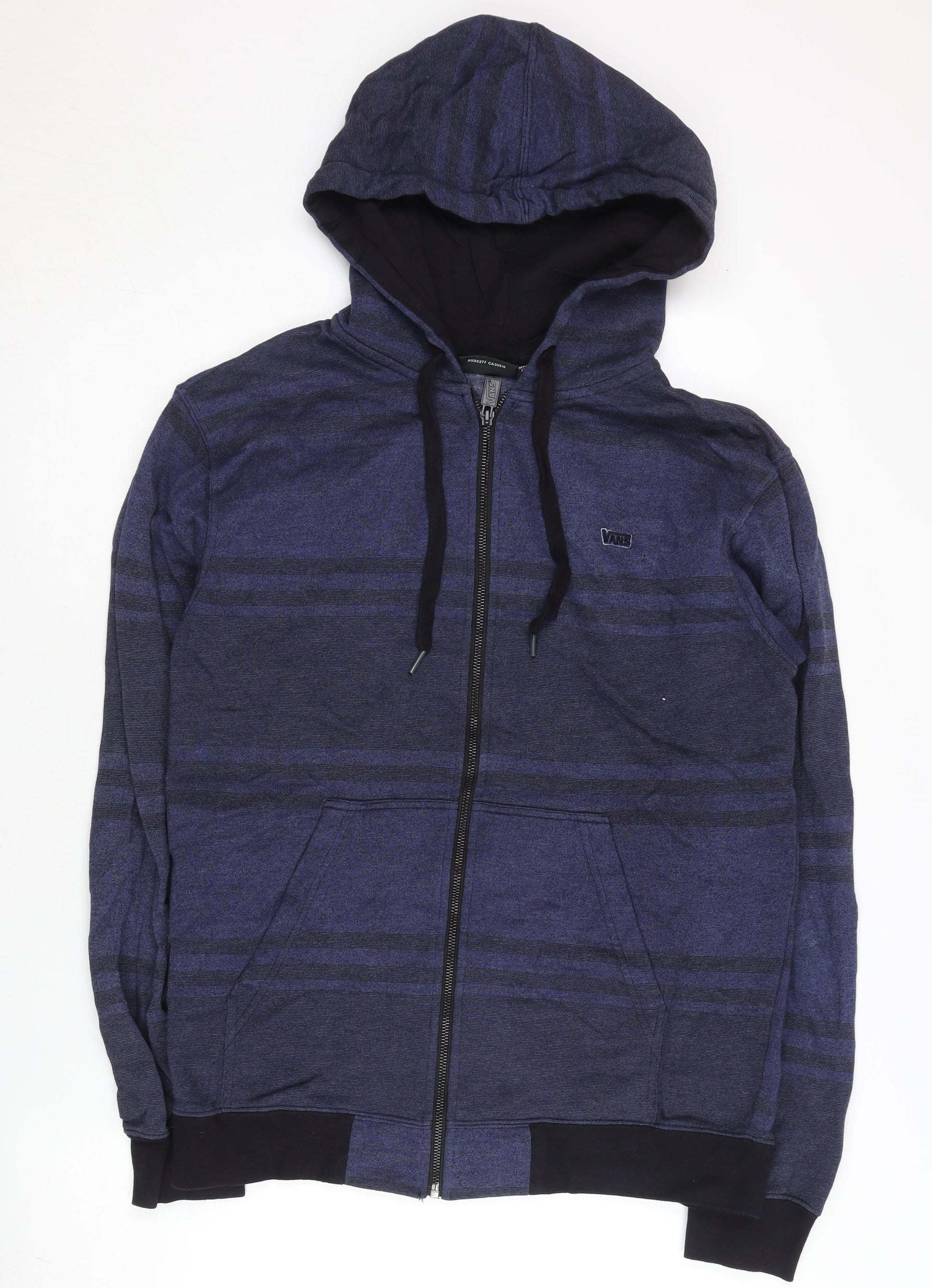 Vans Men’s Blue Full Zip Hoodie Size S Stripe Pattern Cotton Blend