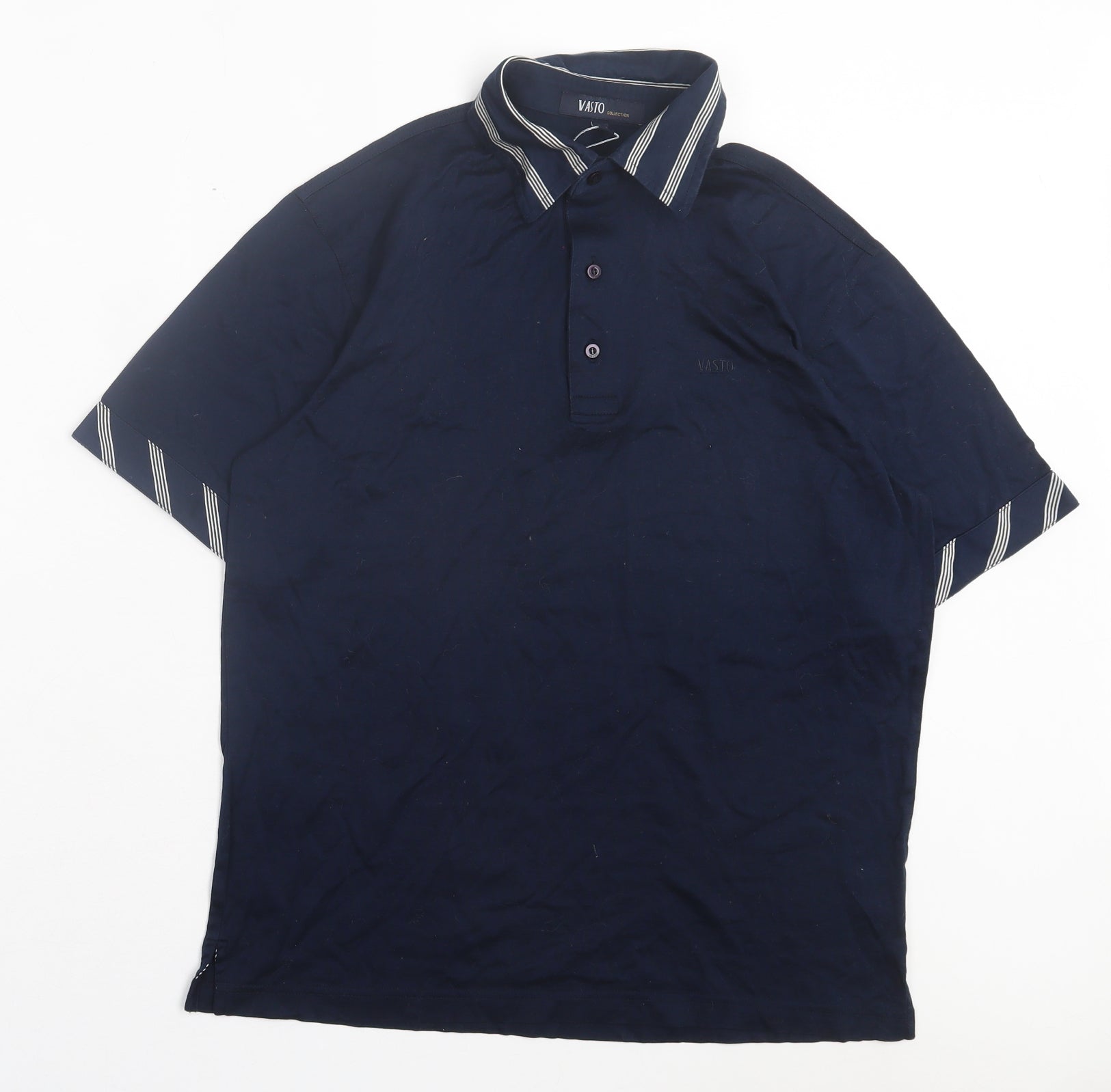 Vasto Mens Blue Cotton Polo Size S Collared Button