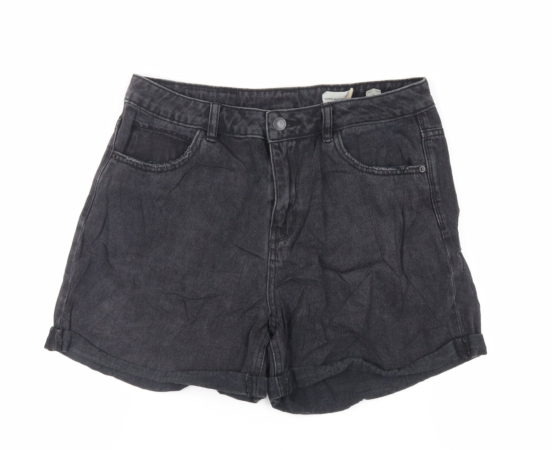 VERO MODA Womens Black Cotton Mom Shorts Size L L4 in Regular Zip